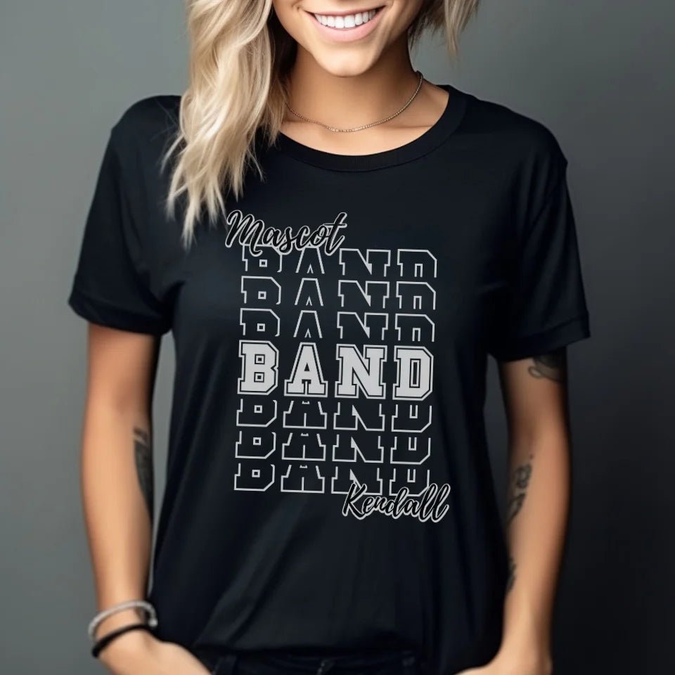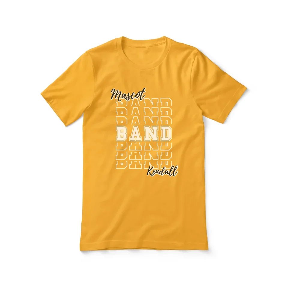 Band T-Shirt - Celebrate your school spirit with our Custom Band Shirt With Mascot and Musician Name. This unisex T-shirt is perfect for proud parents and passionate fans of youth musicians. Personalize it with your musician's name and mascot for a truly unique design that showcases your support. Ideal for band parents who want to display their pride at performances, competitions, or community events. This shirt makes a thoughtful gift for birthdays, holidays, or to celebrate a special concert. It's a fantastic way to connect with other band families and show your enthusiasm for your child's musical journey. Wear it and let your spirit shine while supporting your favorite musician's achievements.