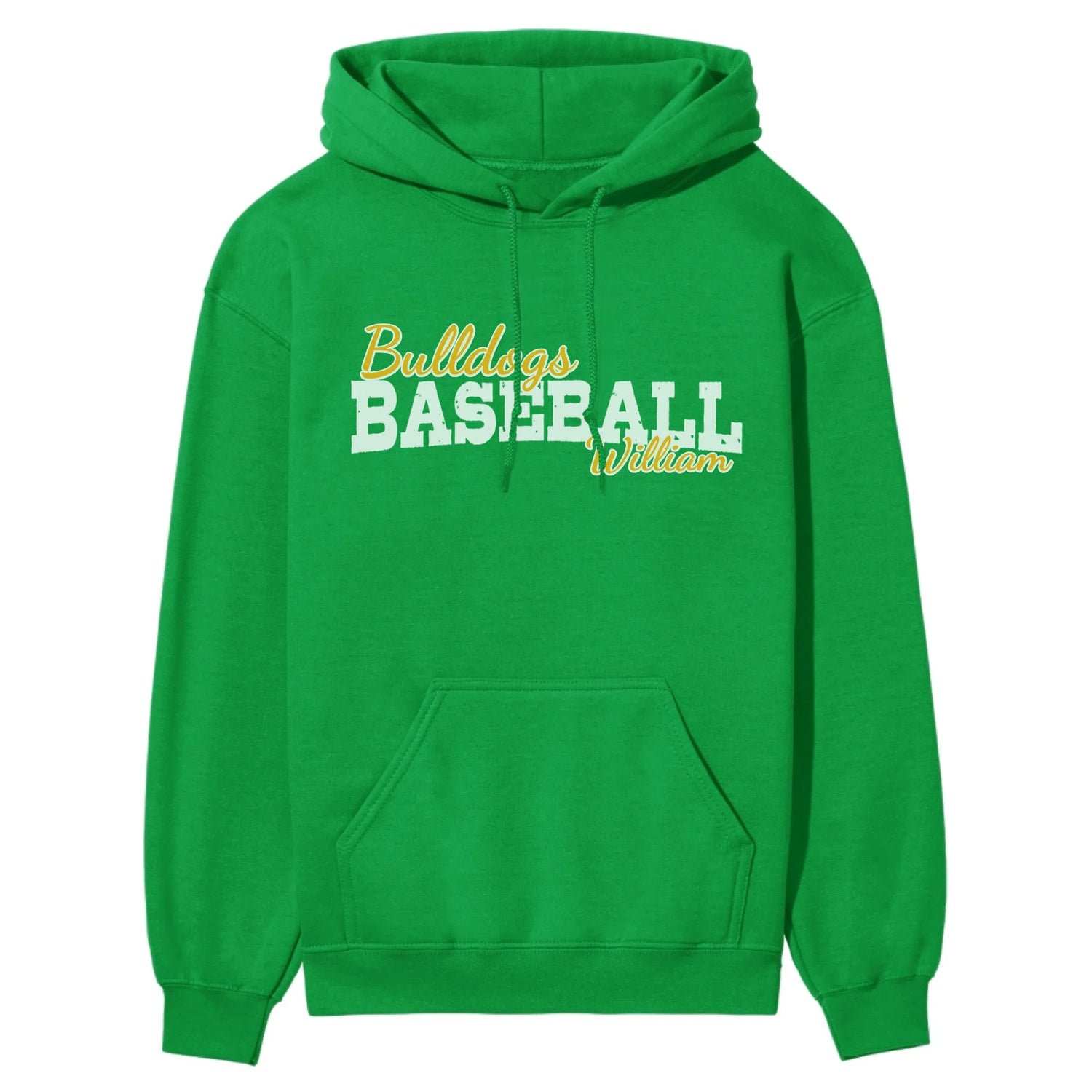 Custom Baseball Mascot and Baseball Player Name | Hoodie | White Graphic