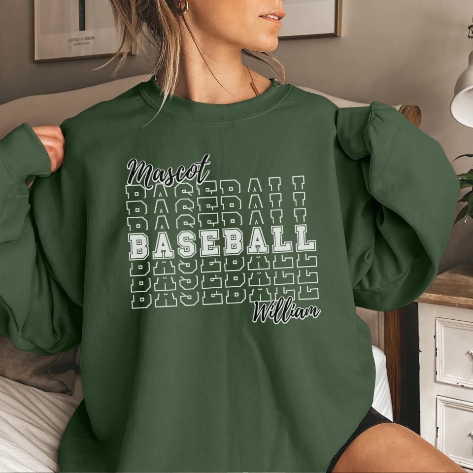 Baseball Sweatshirt - Celebrate your little athlete with our Custom Baseball Sweatshirt featuring a unique mascot design and personalized baseball player name. This stylish and cozy sweatshirt is perfect for showcasing your team spirit at games or outings. An ideal gift for birthdays and holidays, it's a must-have piece of spirit wear for proud parents and fans of youth baseball players. Customize it to reflect your child's team and let the world know you're their biggest supporter. Whether you're cheering from the sidelines or surprising a fellow baseball parent, this sweatshirt is a perfect way to express pride and support. Make every game day special and memorable with a personalized touch that highlights your connection to the game and your favorite player.