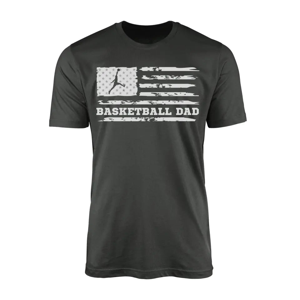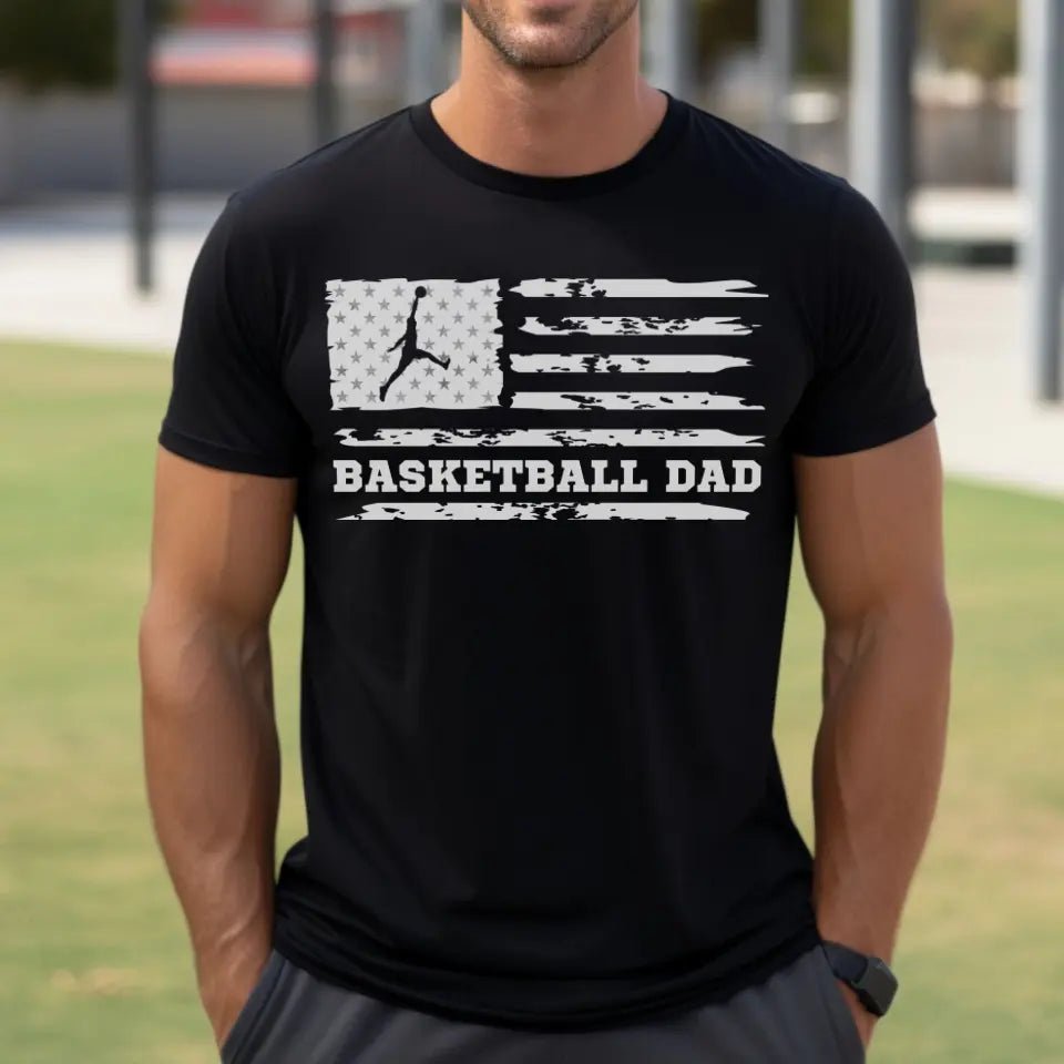 Basketball Dad Shirt - Cheer from the sidelines with this Distressed Flag Basketball Dad Men's T-Shirt! Perfect for Father's Day or a birthday gift, this shirt features a distressed flag design and playfully shows off your role as a ''Basketball Dad''. Get ready to cheer on your child with style!