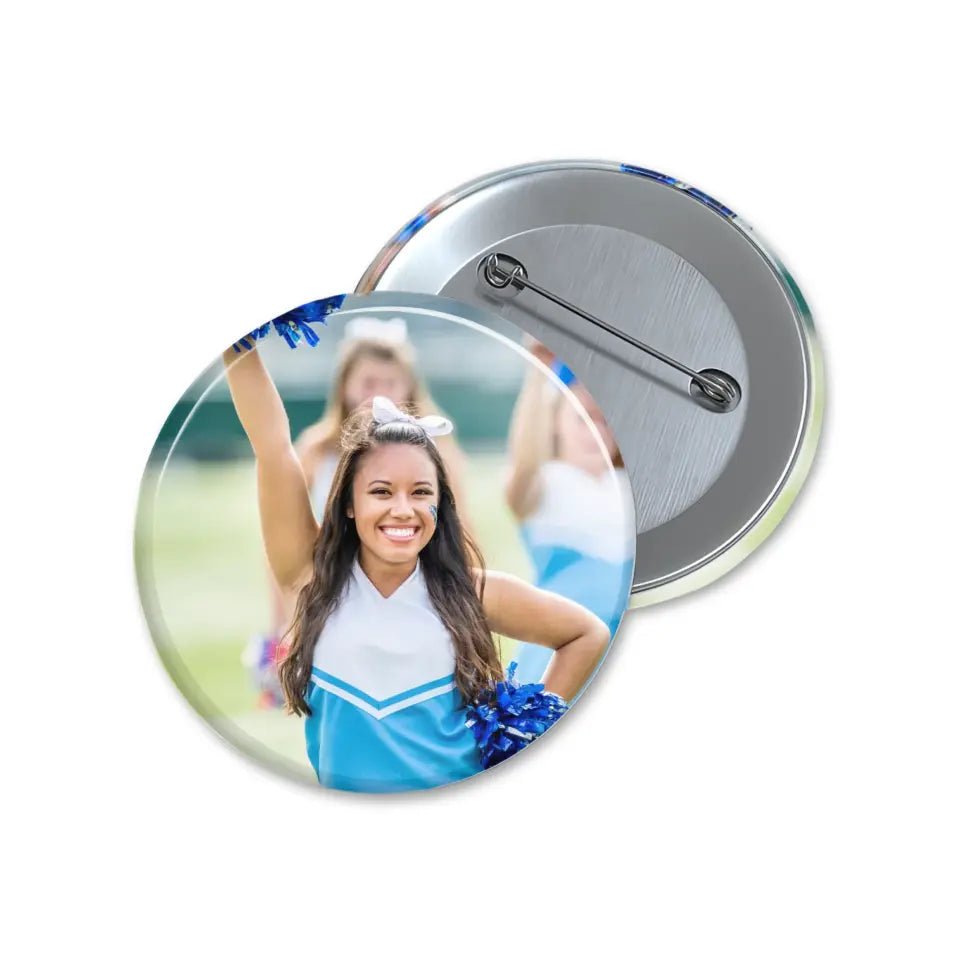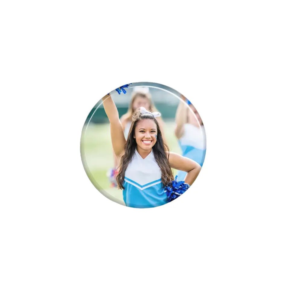 Cheer for your cheerleader with a Custom Cheerleader Photo Button! Upload a favorite photo. Perfect for wearing at cheer competitions, games, and events to show your unwavering support. Available in 3", 2.25", and 1.25" sizes. Let your cheerleader know they have their own cheerleader in the bleachers with this personalized button!