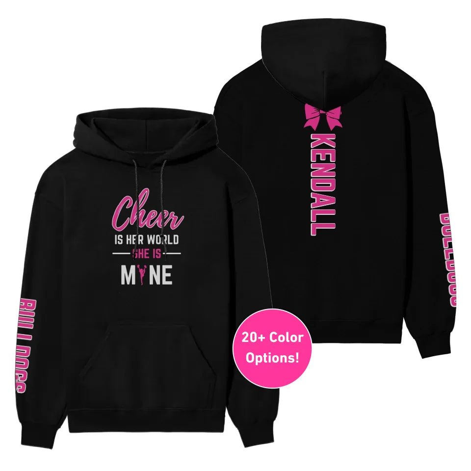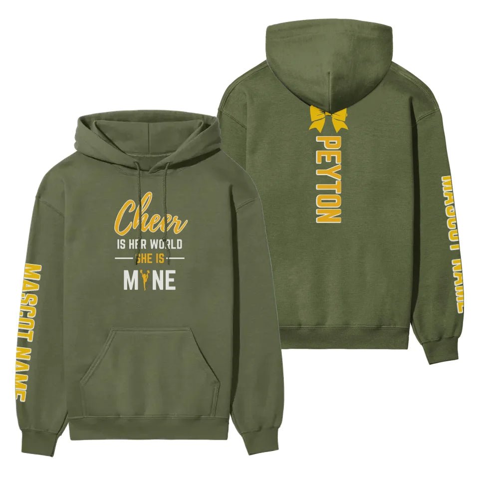 Cheer Is Her World, She Is Mine With Cheerleader Name And Custom Sleeve | Hoodie