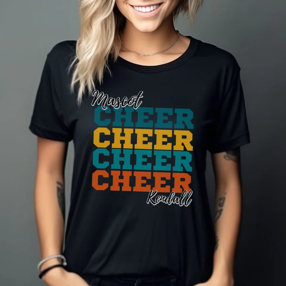 Cheer Shirt - Unleash your school spirit with our Personalized Cheer Cheer Cheer Shirt! This unisex T-shirt is perfect for proud parents and fans looking to show their support for young cheerleaders. Customize it with a mascot and your cheerleader's name to create a unique piece of spirit wear that stands out in the stands. Whether you're cheering from the sidelines or heading to a pep rally, this shirt makes a fantastic gift for birthdays, holidays, or just because you want to celebrate your favorite athlete. Embrace every cheer moment and shout out loud with style and pride. Show your support and make every game day unforgettable!