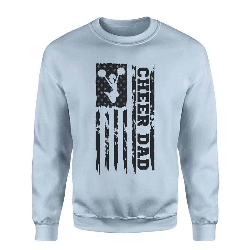 Cheer Dad Sweatshirt - Cheer from the sidelines with this Distressed Flag Cheer Dad Sweatshirt! Perfect for Father's Day or a birthday gift, this shirt features a distressed flag design and playfully shows off your role as a ''Cheer Dad''. Get ready to cheer on your child with style!