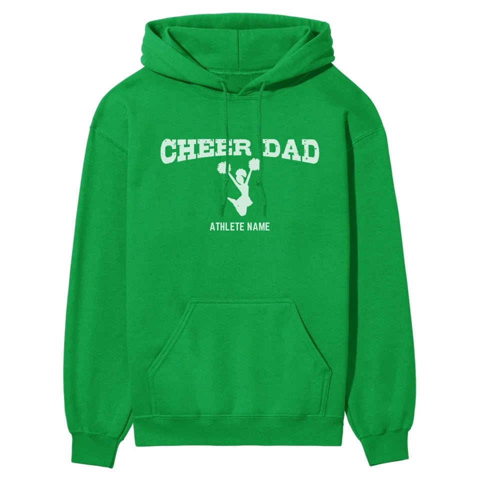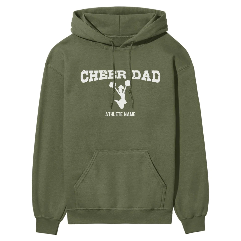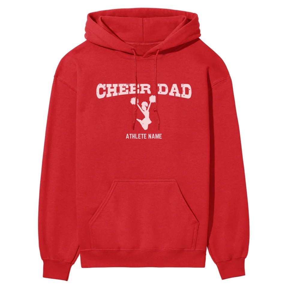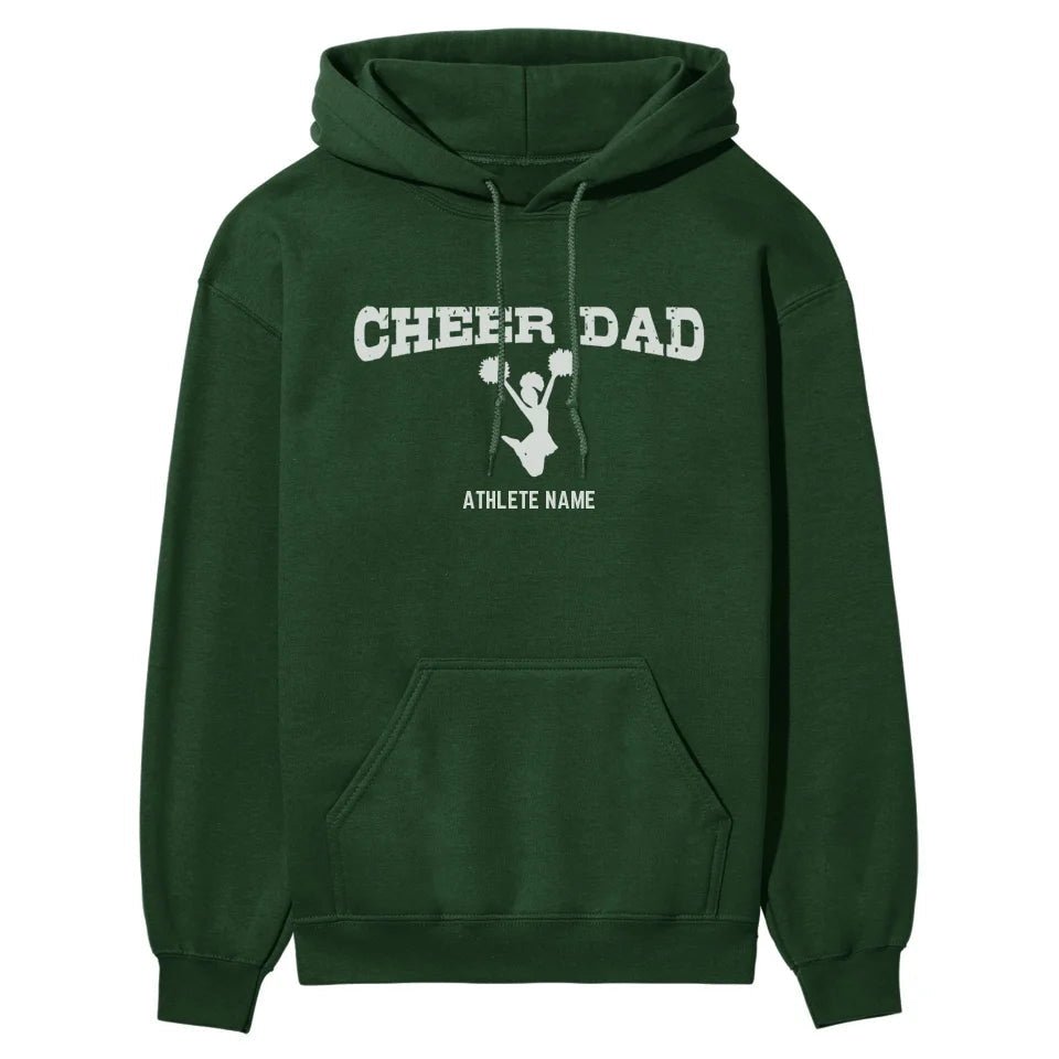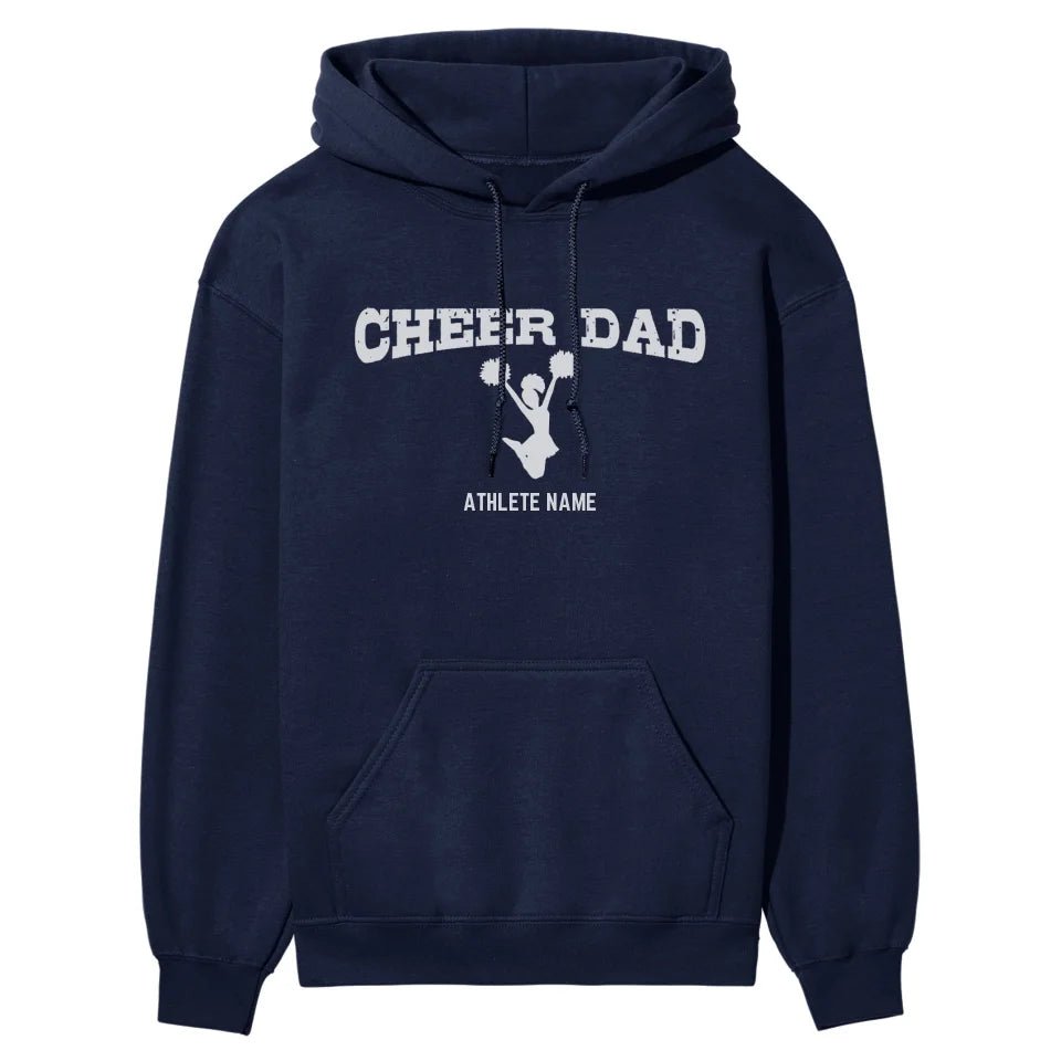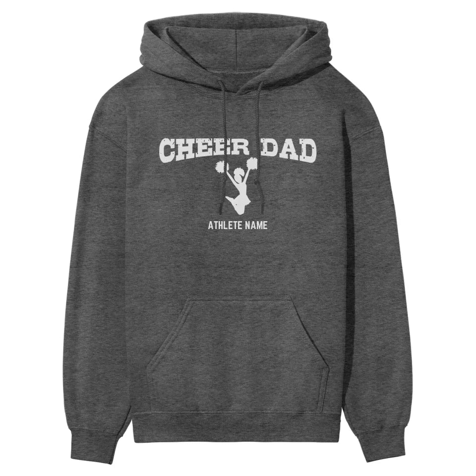 Cheer Dad Hoodie - Get ready to cheer on your favorite Cheerleader with this personalized distressed Cheer Hoodie! This Hoodie can be personalized with an athlete's name. This could be worn by any Cheer dad to stand out in the crowd and it is also a perfect gift for Father's Day, a birthday or just because. No pom-poms required (but definitely encouraged)!