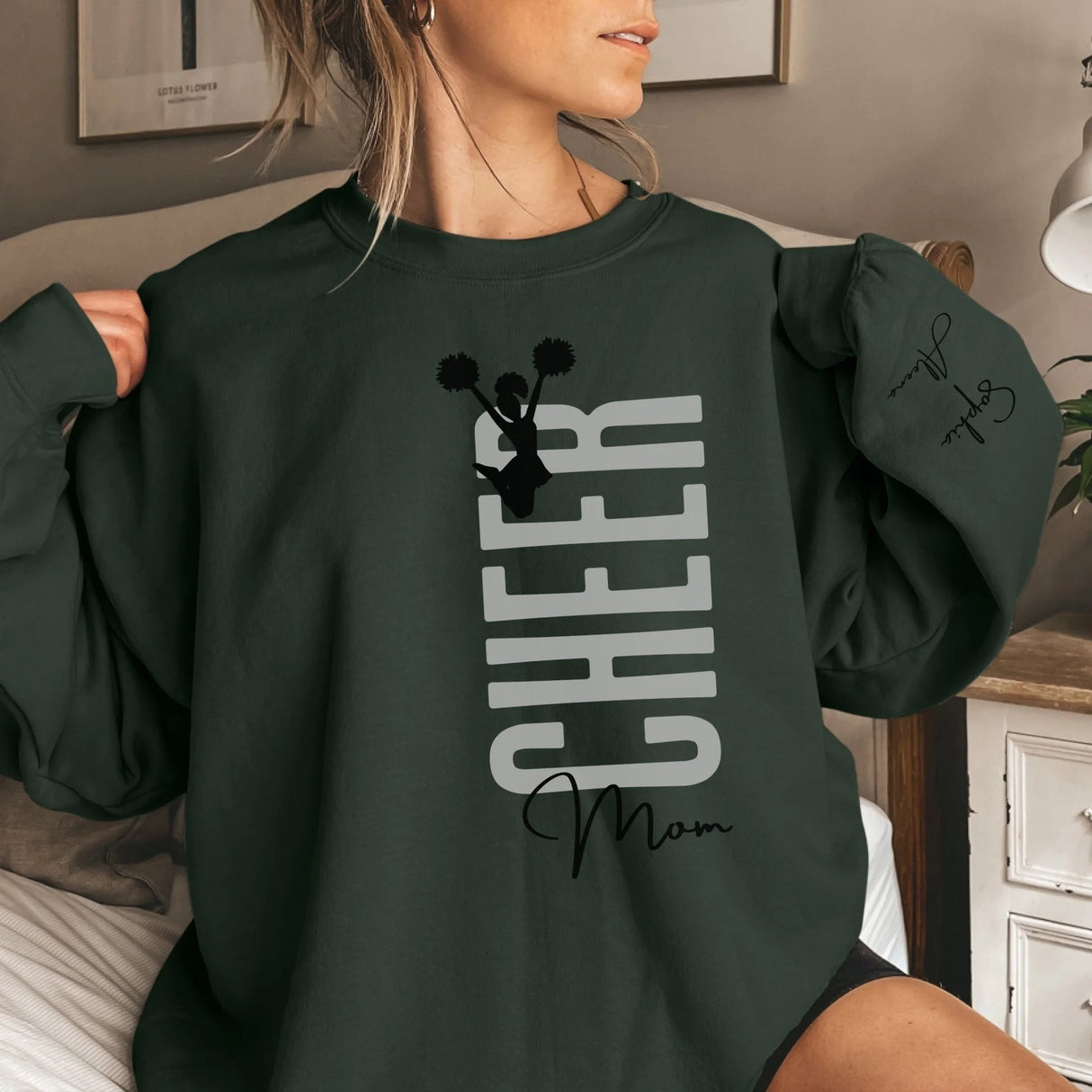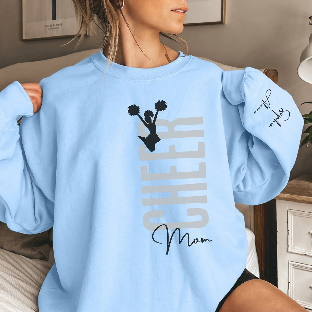 Personalized Cheer Mom Sweatshirt With Mascot, Icon, and Cheerleader Name on Sleeve | Sweatshirt