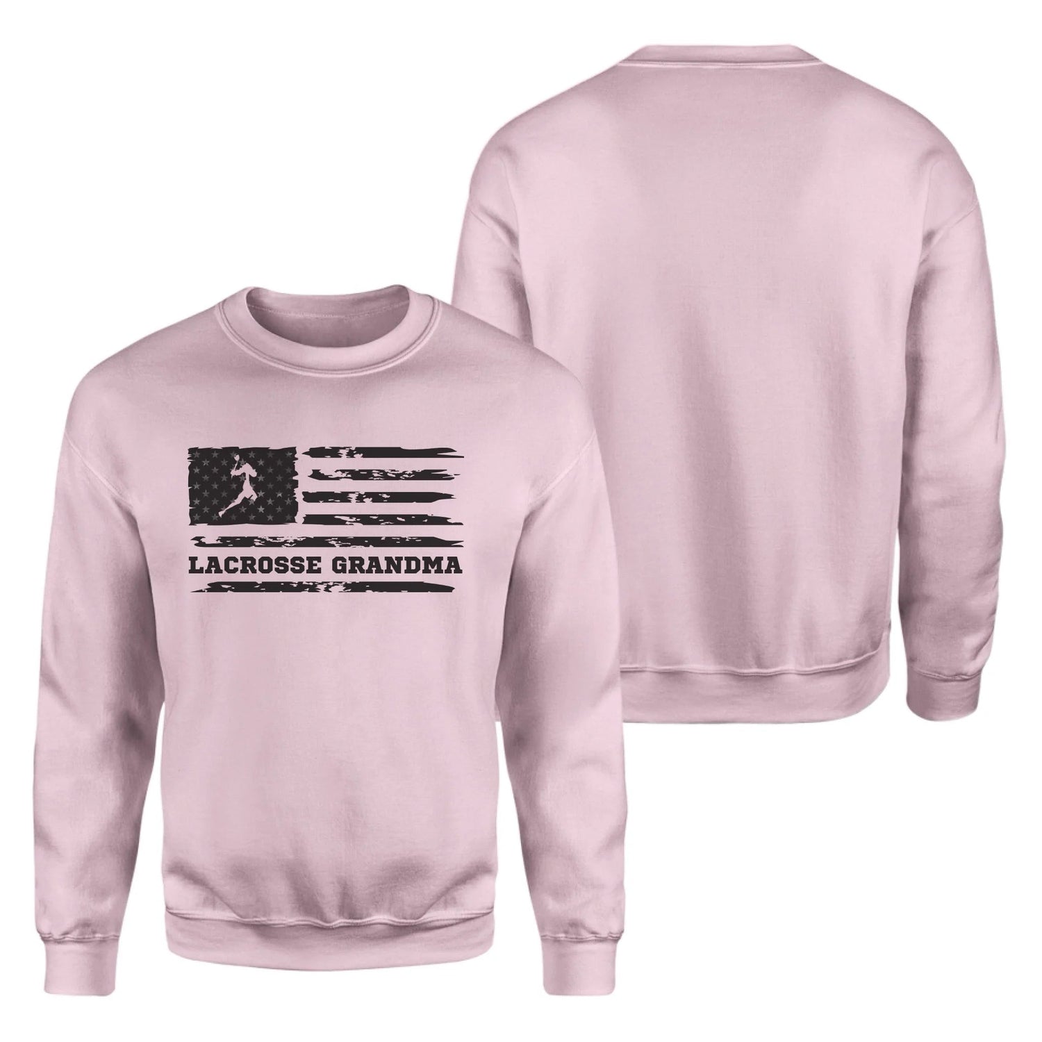 Lacrosse Grandma Horizontal Flag With Lacrosse Player Name | Sweatshirt | Black Graphic
