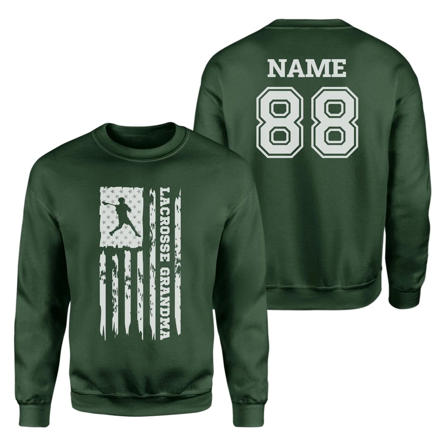 Lacrosse Grandma Vertical Flag With Lacrosse Player Name | Sweatshirt | White Graphic