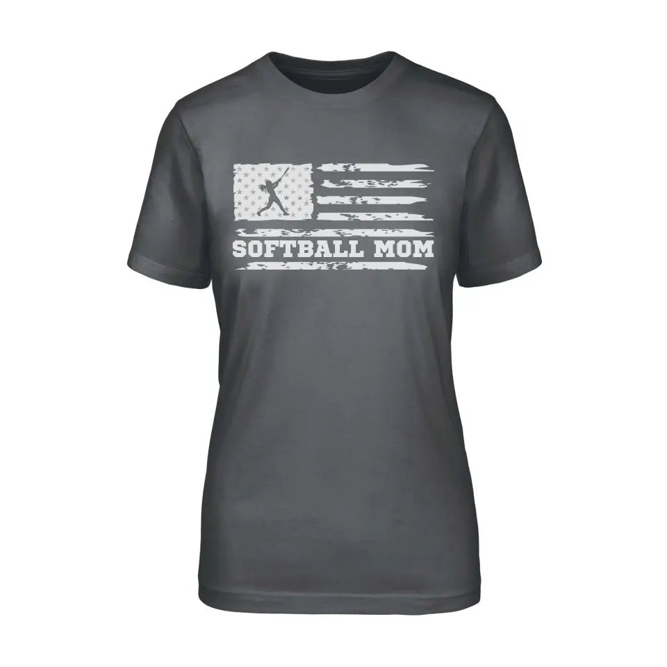 Softball Mom Shirt - Cheer from the sidelines with this Distressed Flag Softball Mom Unisex T-Shirt! Perfect for Mother's Day or a birthday gift, this shirt features a distressed flag design and playfully shows off your role as a ''Softball Mom''. Get ready to cheer on your child with style!