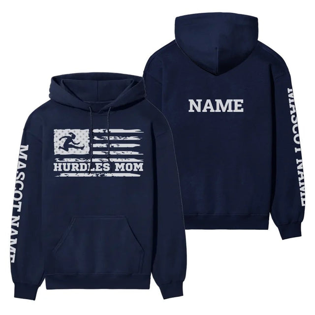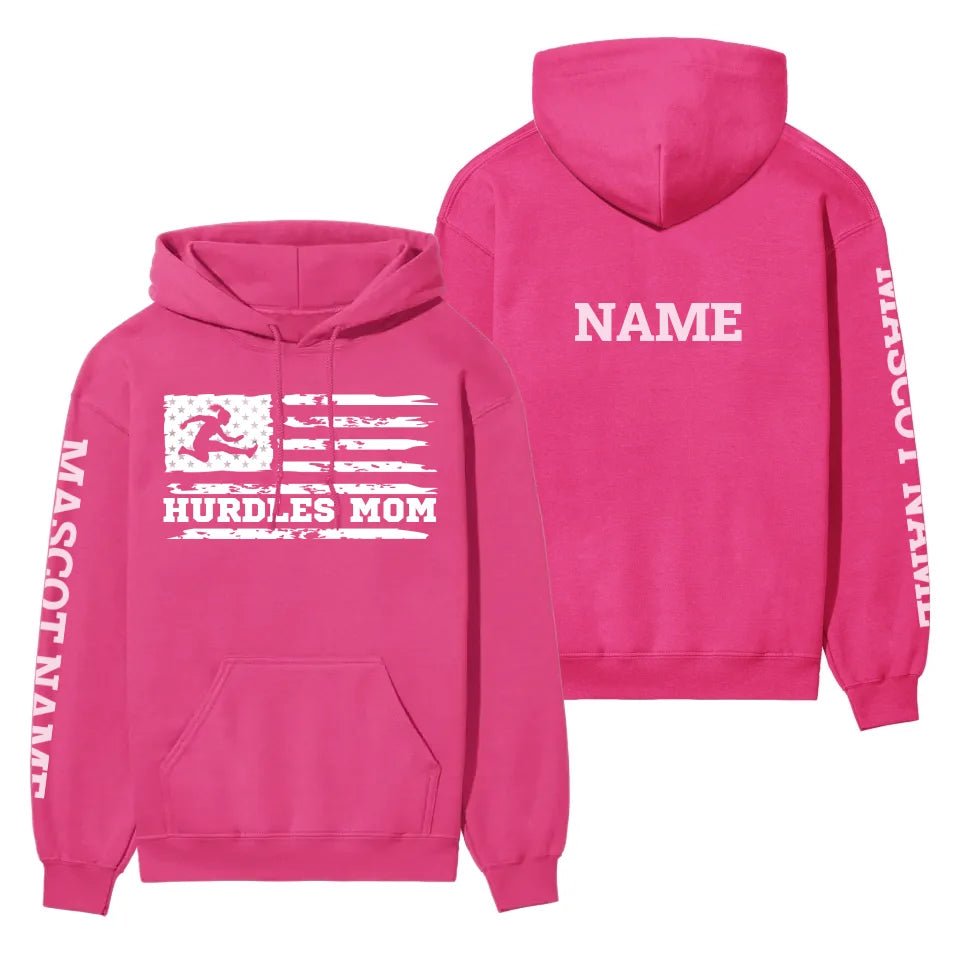 Hurdles Mom Hoodie - Celebrate your pride for your hurdler with this customizable Hurdles Mom Hoodie. Perfect for showcasing your support at every meet, this warm and stylish piece of spirit wear lets you personalize the design with your athlete's name. It's an ideal gift for Mother's Day, birthdays, or any occasion that calls for a heartfelt tribute to your youth athlete. Whether cheering from the sidelines or staying cozy during practice, this hoodie is a fantastic way for moms to show their unwavering support and team spirit. Embrace the excitement of track and field and make every moment memorable with this unique, customizable hoodie.