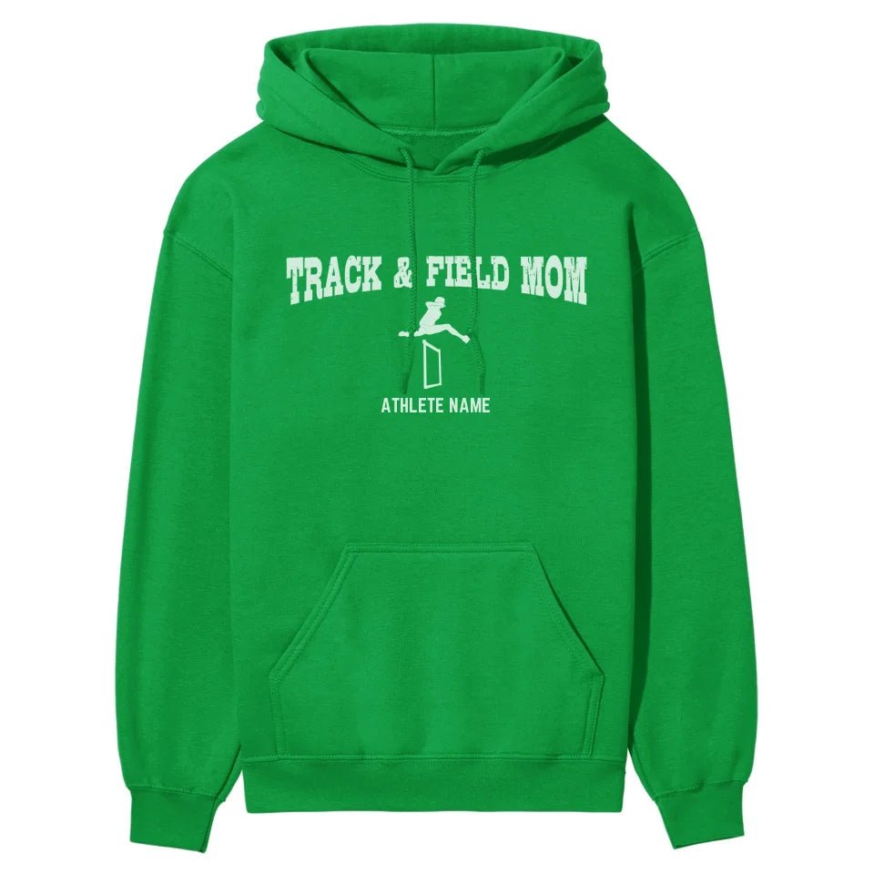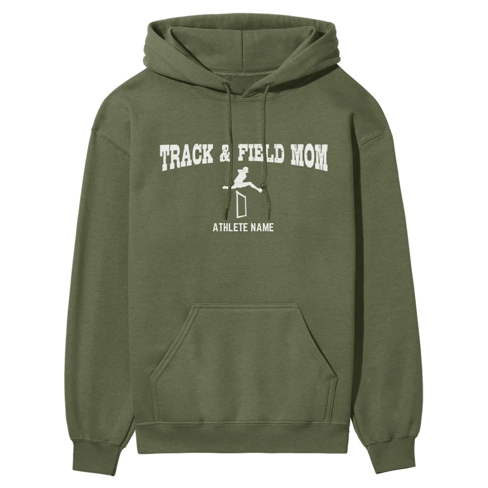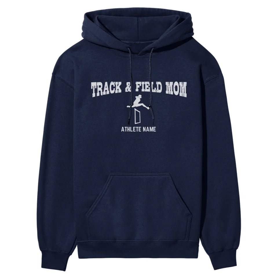 Hurdles Mom Hoodie - Celebrate the pride and joy of being a hurdles mom with this stylish white graphic hoodie. Perfect for track and field enthusiasts, this customizable hoodie features a hurdler icon and your athlete's name, allowing you to support your child in a unique and personal way. It's the ideal spirit wear for cheering on your young hurdler at meets or everyday outings, showcasing your unwavering support and passion. This hoodie makes a thoughtful gift for Mother's Day, birthdays, holidays, or any occasion that acknowledges the dedication and love of a proud parent. Show off your team spirit and let everyone know you're their biggest fan with this chic and comfortable hurdles mom hoodie.