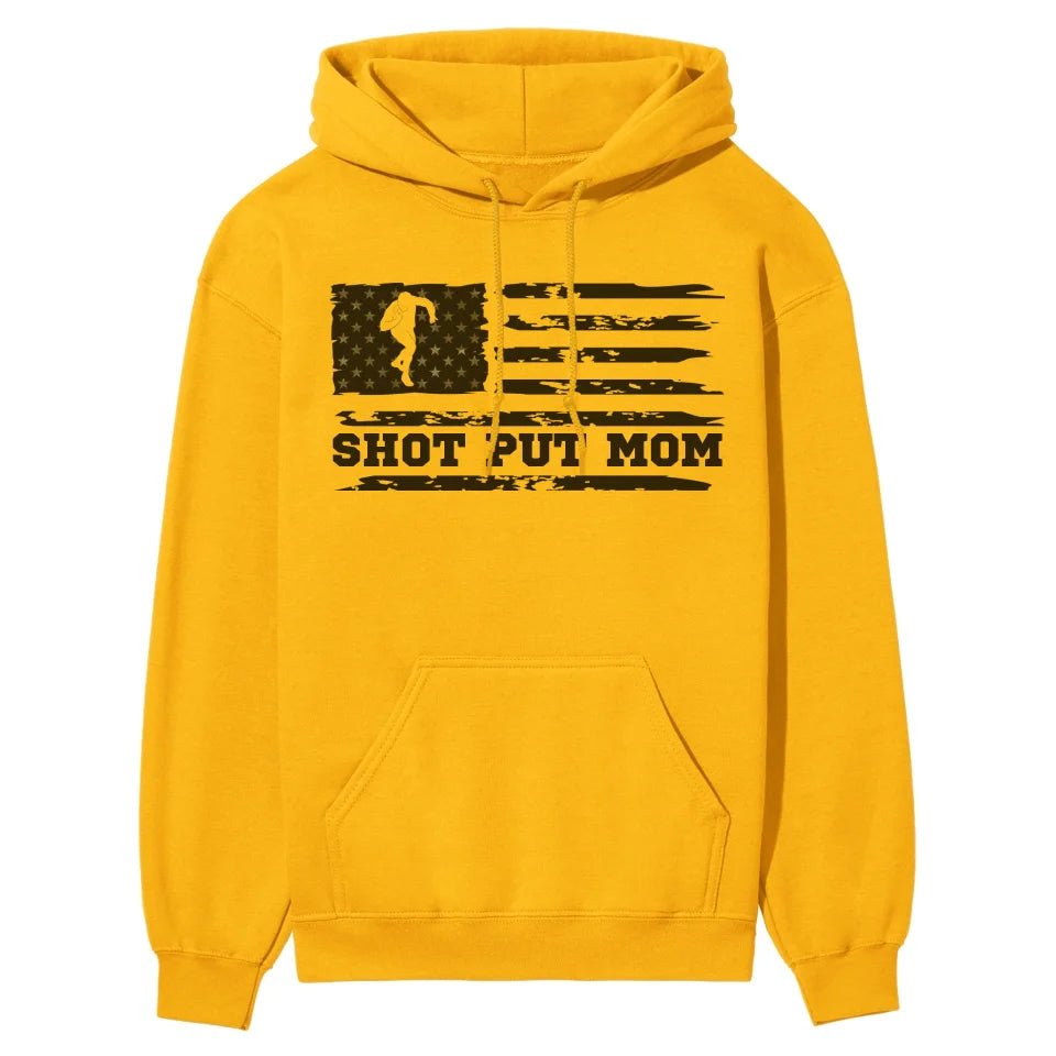 Shot put Mom Hoodie - Celebrate your pride and support for your young athlete with our customizable Shot Put Mom Horizontal Flag Hoodie in Black Graphic! This cozy, stylish hoodie is perfect for parents and fans who want to showcase their spirit at competitions and meets. Personalize it with your athlete's name or team to make it uniquely yours. Whether it's for Mother's Day, a birthday, holidays, or just because, this hoodie makes a thoughtful gift for any proud shot put mom. Show off your enthusiasm and team pride in the most fashionable way!