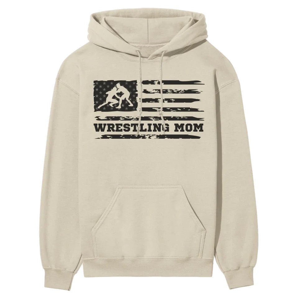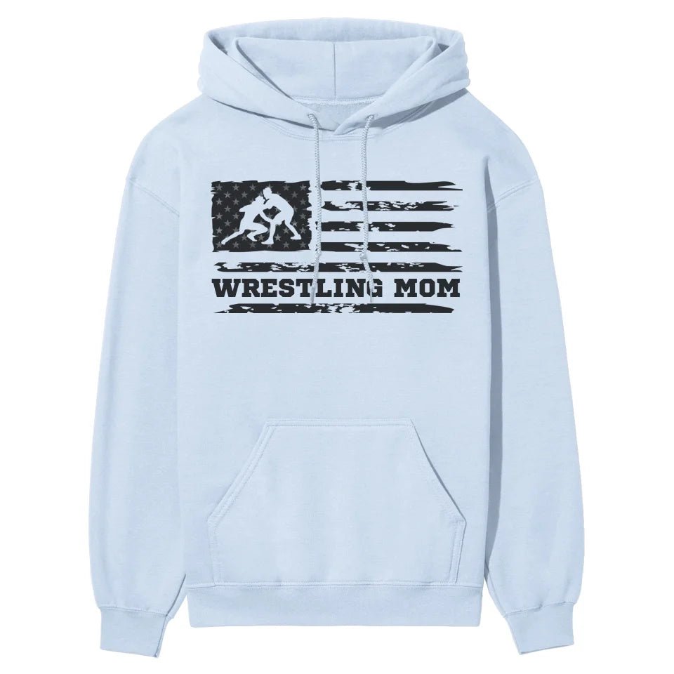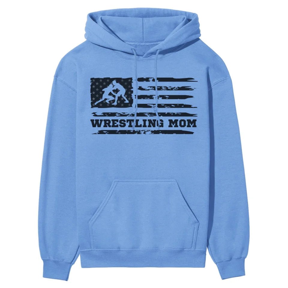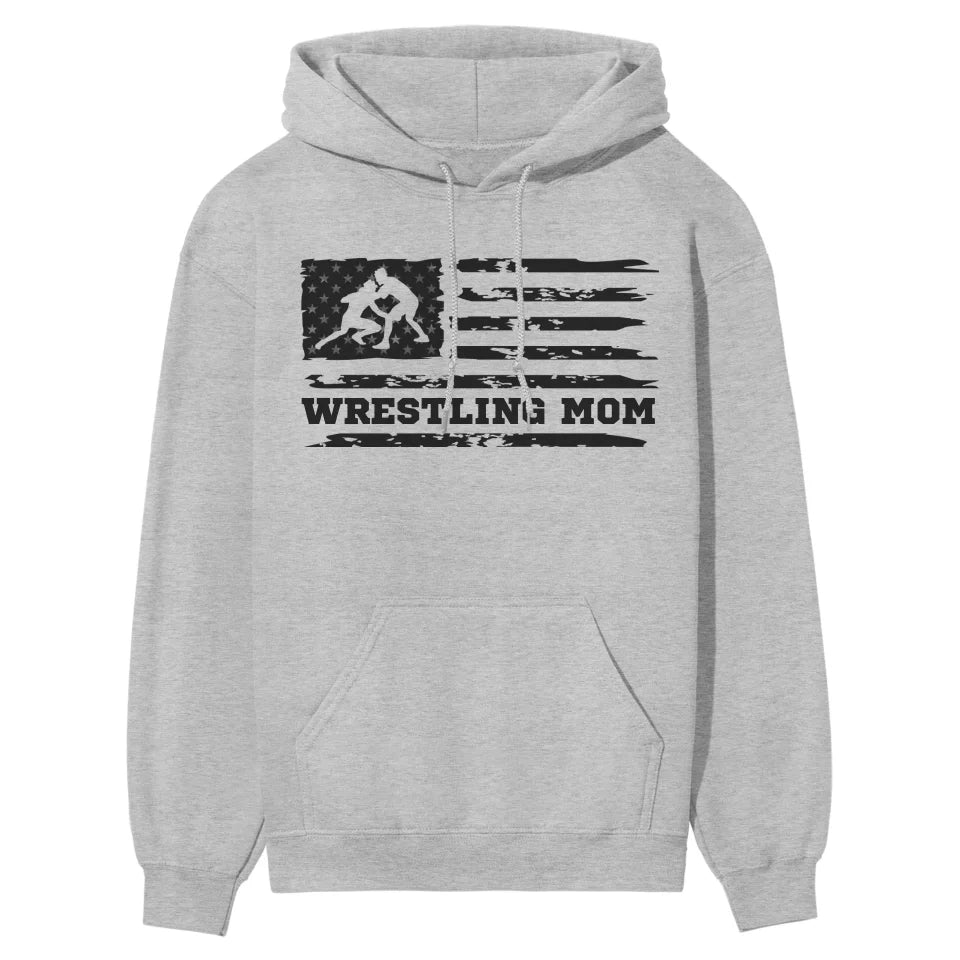 Wrestling Mom Hoodie - Show off your team spirit with our customizable Wrestling Mom Horizontal Flag Hoodie in striking black! Perfect for proud parents and enthusiastic fans of youth wrestling, this hoodie lets you add a personal touch to cheer on your favorite athlete. Whether you're gearing up for a match or celebrating a victory, this piece of spirit wear is your go-to for support in style.