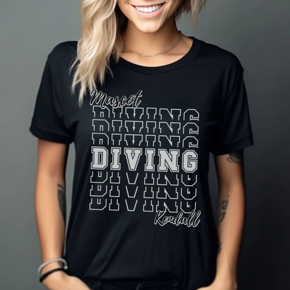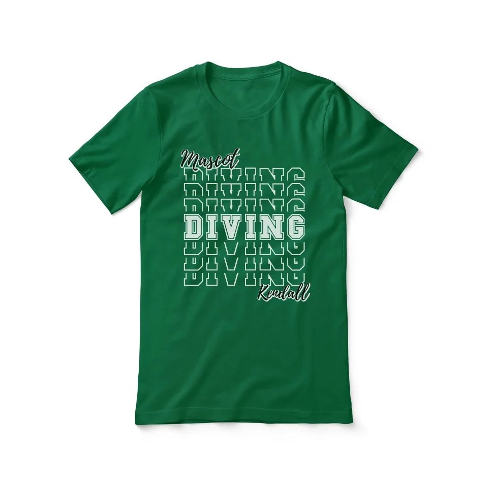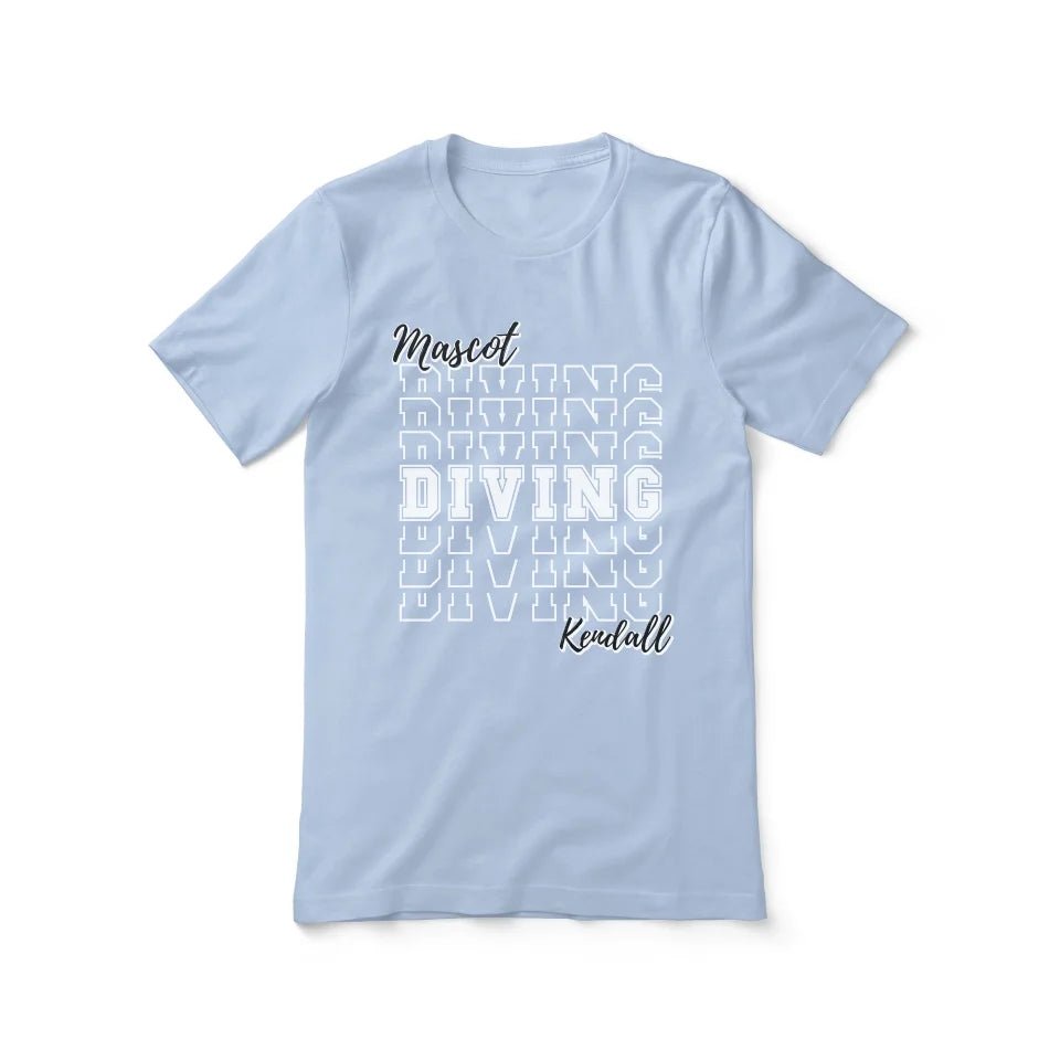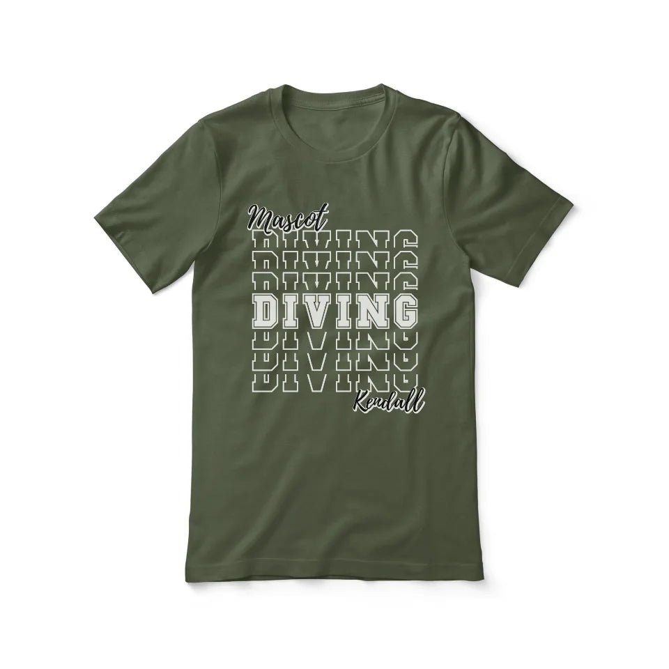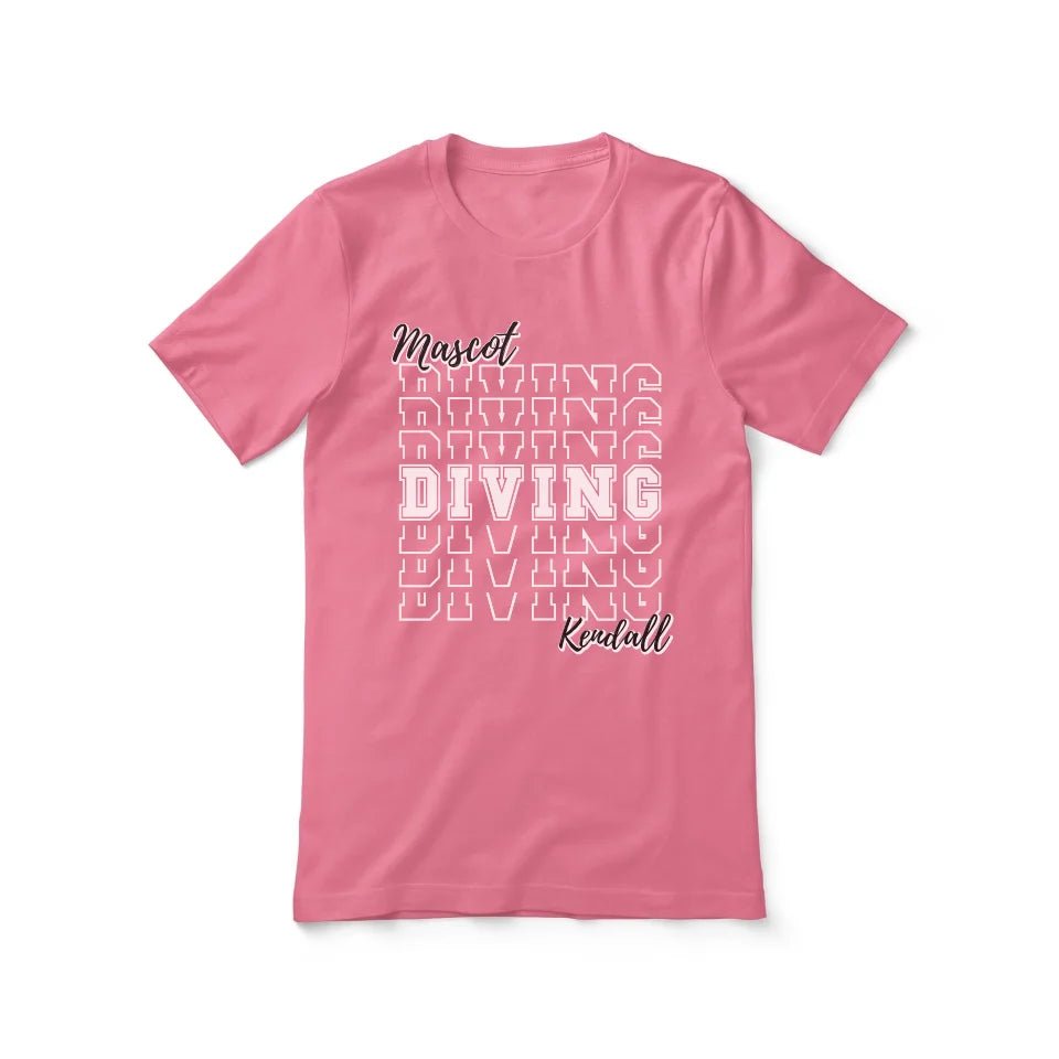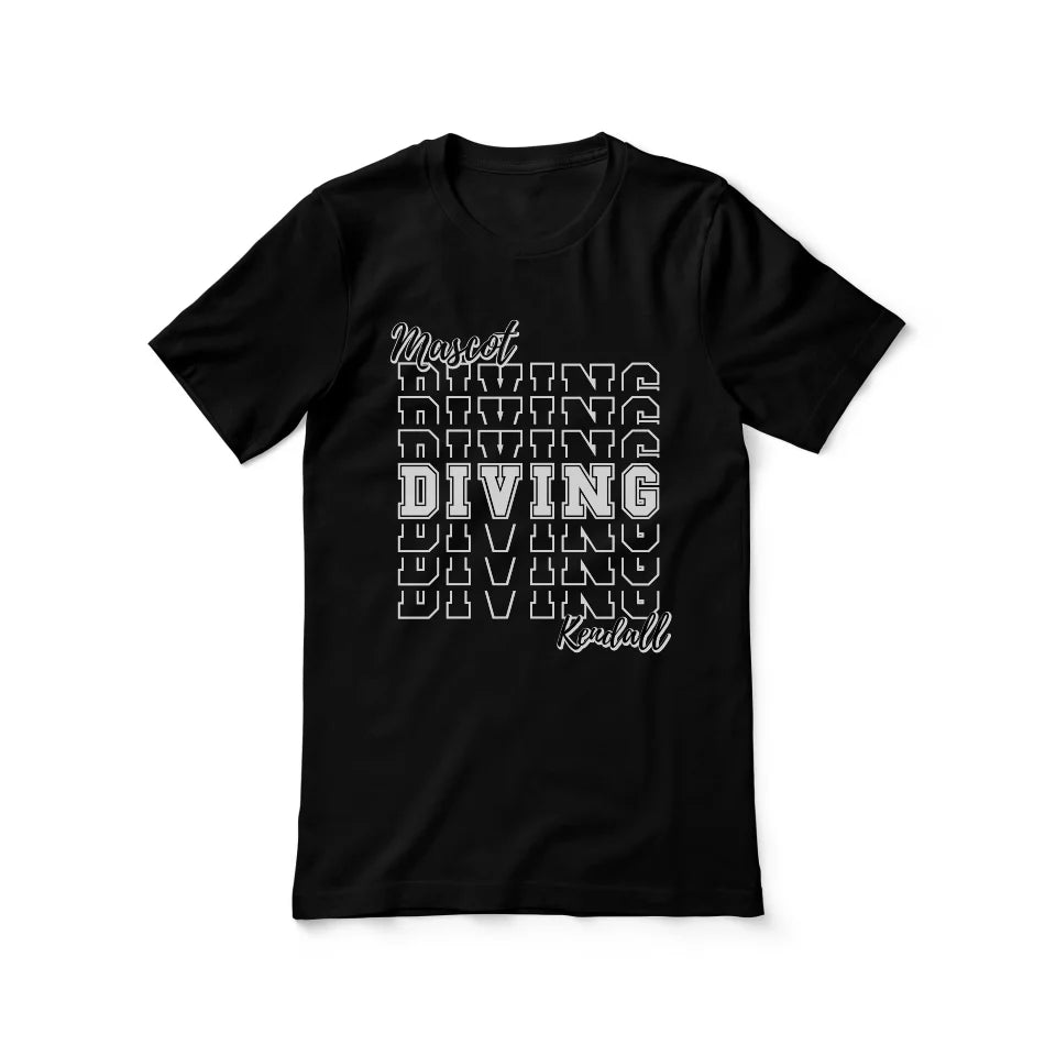 Diving Shirt - Dive into team spirit with our Custom Diving Shirt. Perfect for proud parents and fans of youth divers, this unisex t-shirt allows you to personalize it with your school's mascot and your diver's name, making it a unique piece of spirit wear. Whether you're cheering from the poolside or supporting from afar, this shirt is an ideal way to show your love and support. It's a thoughtful gift for birthdays, holidays, or just because you want to celebrate the diver in your life. Surprise Dad on Father's Day or make any day special for the dedicated diving enthusiast in your family. Let everyone know who you're rooting for with this one-of-a-kind custom diving shirt, designed to spread team spirit and family pride.