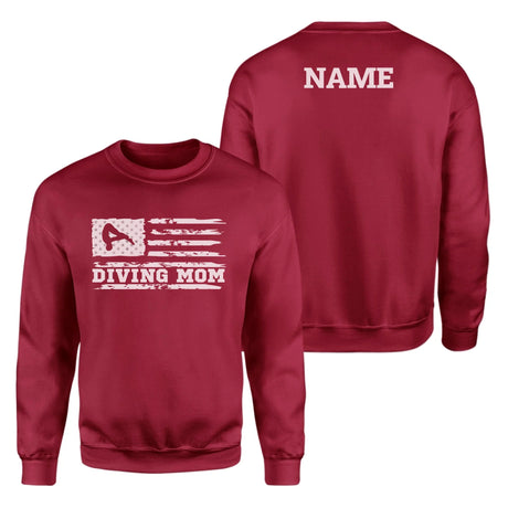 Diving Mom Horizontal Flag With Diver Name | Sweatshirt | Black Graphic