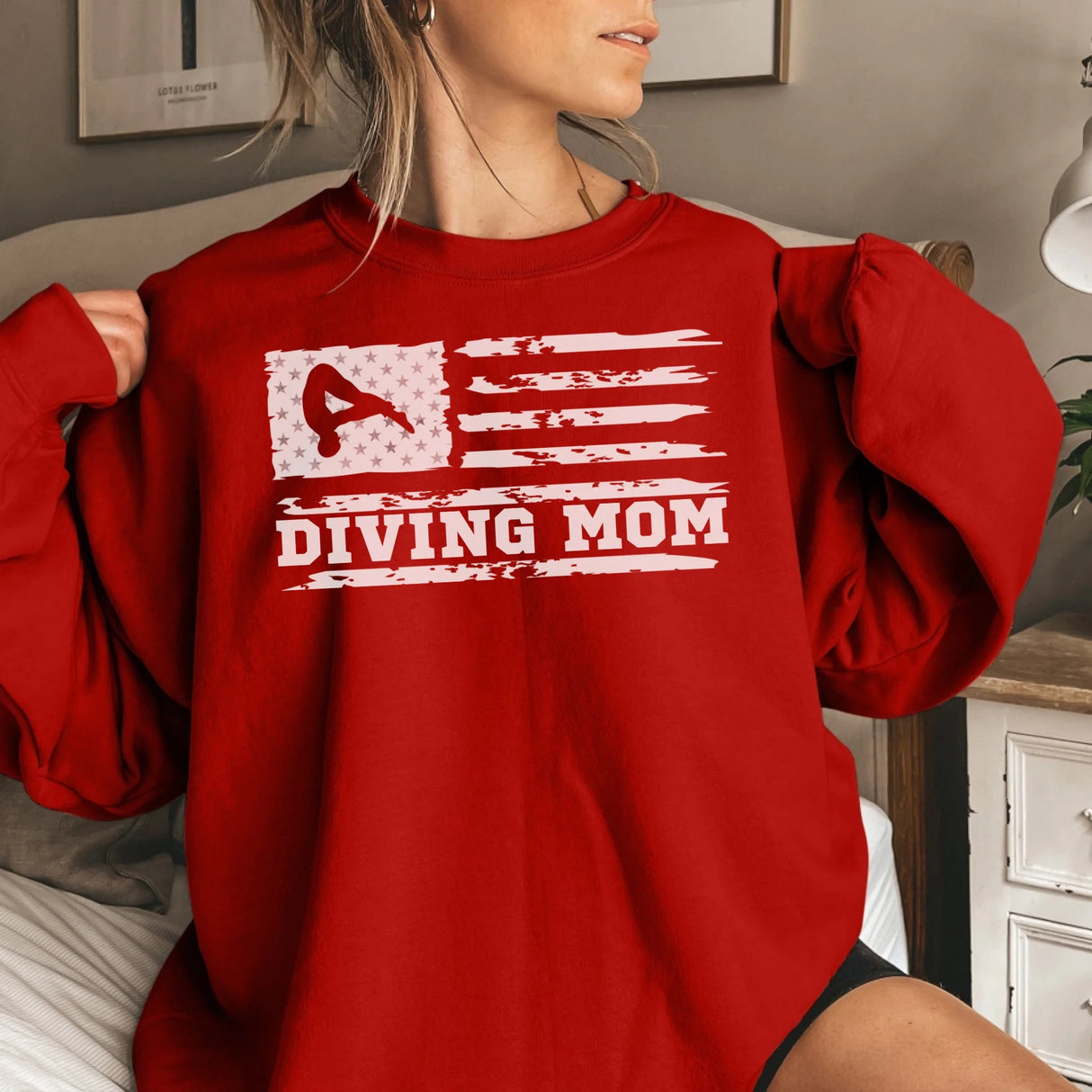 Diving Mom Horizontal Flag | Sweatshirt | White Graphic