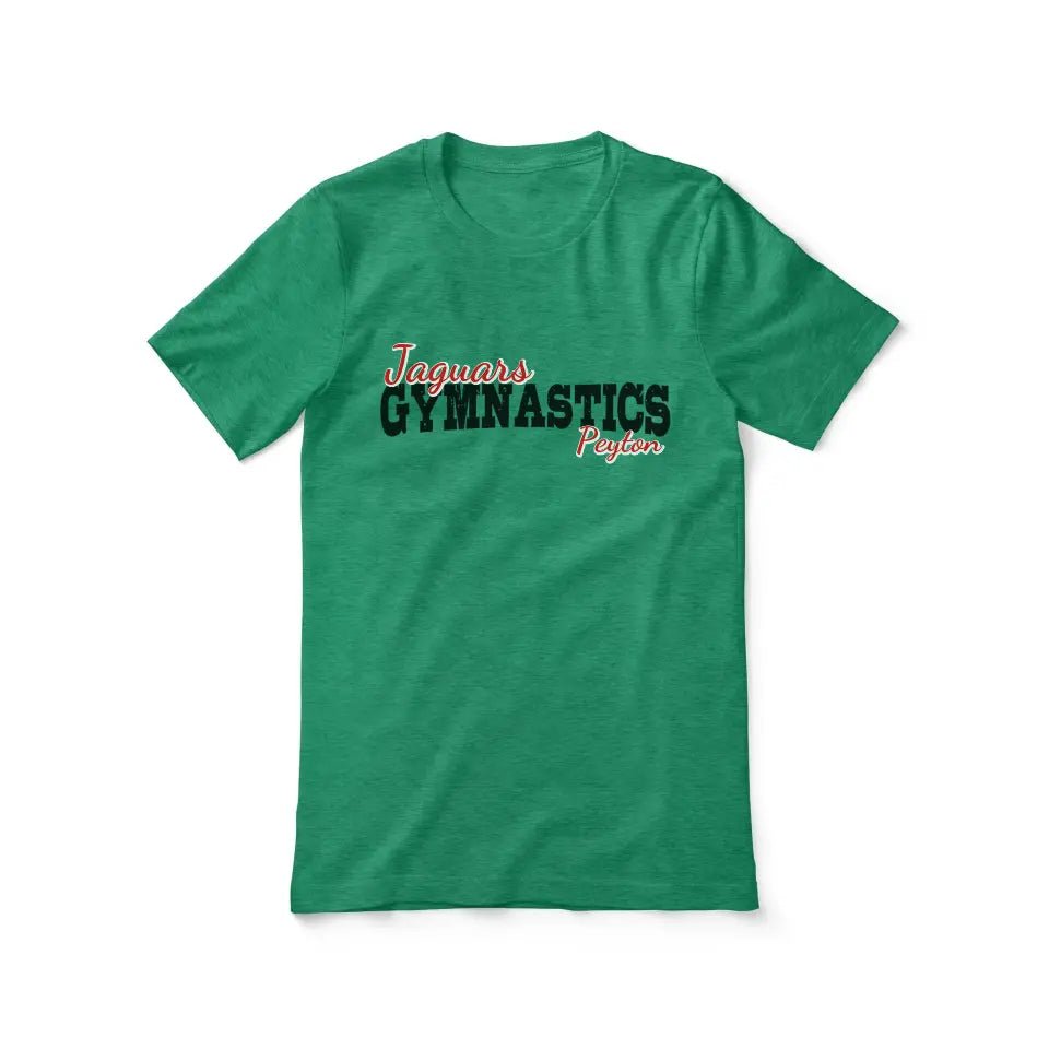Gymnast Shirt - Get ready to cheer on your favorite Gymnast with this personalized distressed Gymnastics Unisex T-Shirt! This Unisex T-Shirt can be personalized with a team mascot name and with an athlete's name. This could be worn by any Gymnastics supporter to stand out in the crowd and it is also a perfect gift for Mother's Day, a birthday or just because. No pom-poms required (but definitely encouraged)!