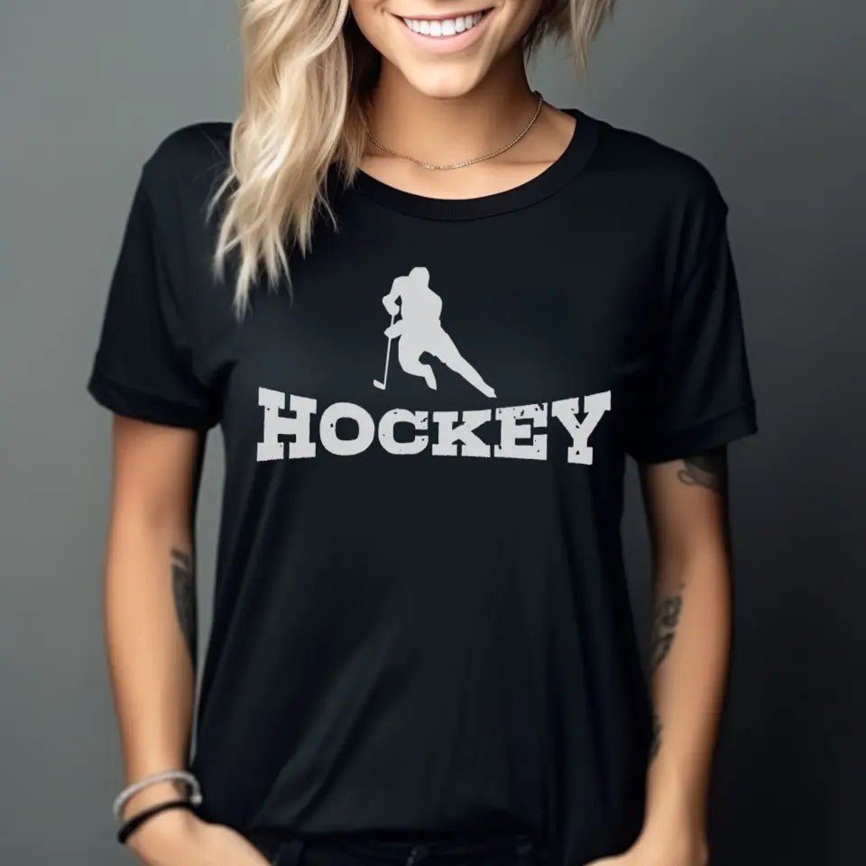 Hockey Shirt - Get ready to cheer on your favorite Hockey Player with this distressed Hockey Unisex T-Shirt! This could be worn by any Hockey supporter to stand out in the crowd and it is also a perfect gift for Mother's Day, a birthday or just because. No pom-poms required (but definitely encouraged)!