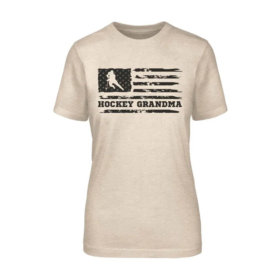 Hockey Grandma Shirt - Cheer from the sidelines with this Distressed Flag Hockey Grandma Unisex T-Shirt! Perfect for Mother's Day or a birthday gift, this shirt features a distressed flag design and playfully shows off your role as a ''Hockey Grandma''. Get ready to cheer on your child with style!