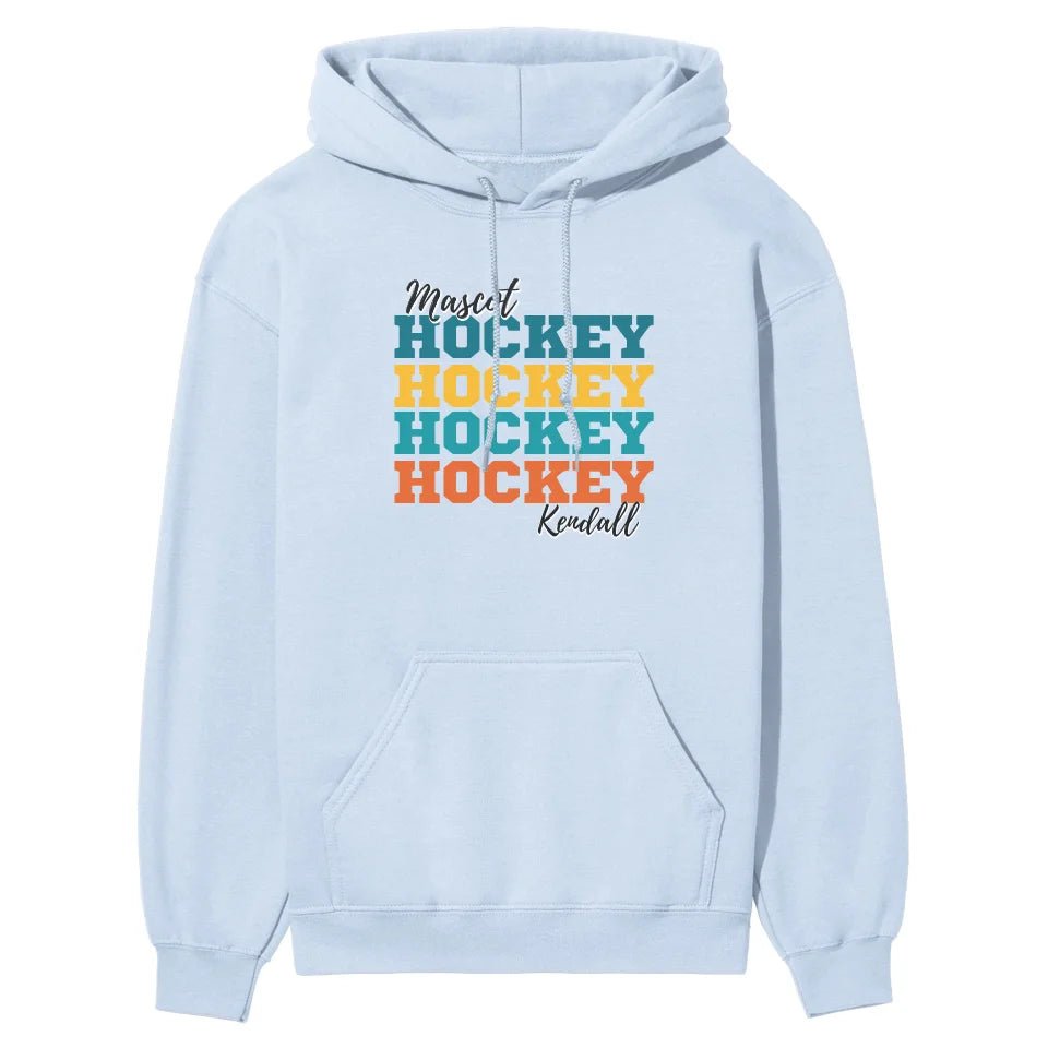 Hockey Hoodie - Celebrate your love for the game with this Personalized Hockey Hoodie featuring your team's mascot and your favorite hockey player's name. This unique spirit wear piece is perfect for proud parents and dedicated fans of youth athletes, allowing you to showcase your support in style. Customize it to reflect your team pride, making it an ideal gift for Father's Day, birthdays, holidays, or any special occasion. Whether cheering from the stands or around town, this hoodie captures the essence of being a devoted hockey fan, making it a must-have for any hockey enthusiast. Show your spirit and celebrate your favorite player's journey in the sport with this standout, customizable hoodie that's as unique as your passion for hockey.