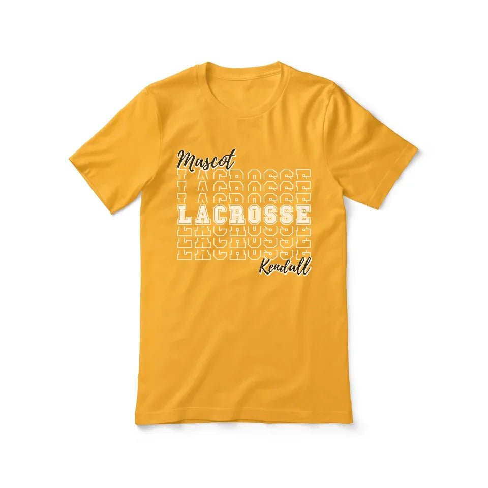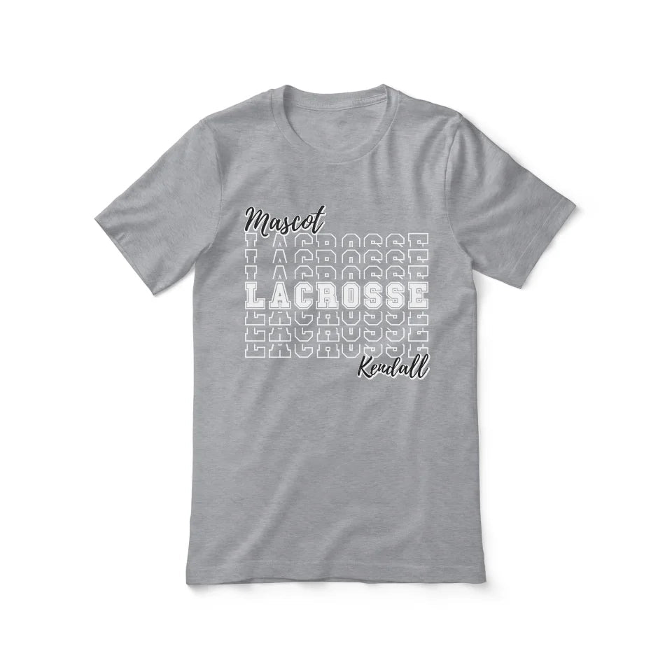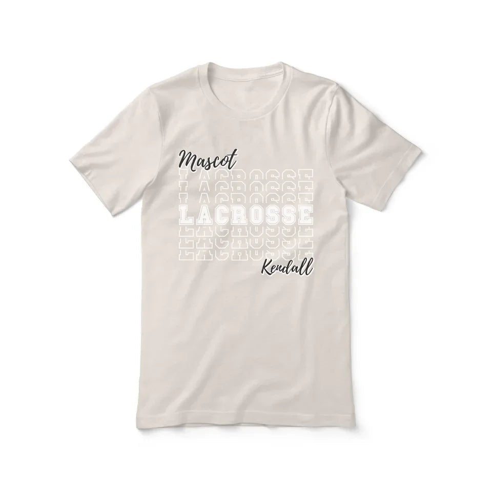 Lacrosse Shirt - Elevate your game day spirit with our customizable Lacrosse Shirt. Perfect for showcasing team pride, this unisex t-shirt allows you to personalize it with your mascot and lacrosse player's name. Whether you're cheering from the sidelines or celebrating a win, this shirt is the ideal piece of spirit wear for proud parents and fans of youth athletes. Surprise your favorite lacrosse mom or dad with a thoughtful gift on Mother's Day, Father's Day, birthdays, or any holiday. Let them display their unwavering support and love for the sport and their player. This Lacrosse Shirt is more than just apparel—it's a statement of pride and dedication. Get ready to stand out in the crowd and support your team with style and enthusiasm.