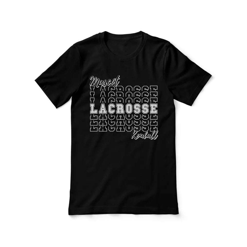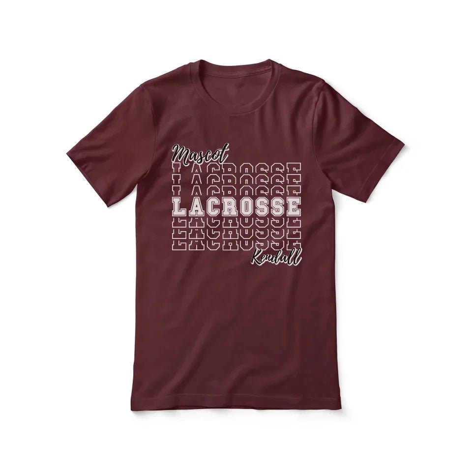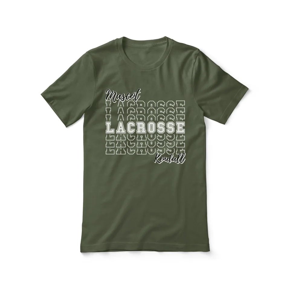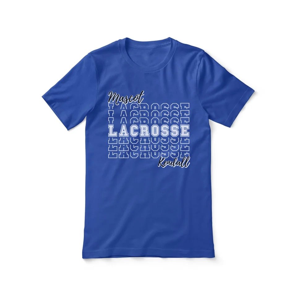 Lacrosse Shirt - Elevate your game day spirit with our customizable Lacrosse Shirt. Perfect for showcasing team pride, this unisex t-shirt allows you to personalize it with your mascot and lacrosse player's name. Whether you're cheering from the sidelines or celebrating a win, this shirt is the ideal piece of spirit wear for proud parents and fans of youth athletes. Surprise your favorite lacrosse mom or dad with a thoughtful gift on Mother's Day, Father's Day, birthdays, or any holiday. Let them display their unwavering support and love for the sport and their player. This Lacrosse Shirt is more than just apparel—it's a statement of pride and dedication. Get ready to stand out in the crowd and support your team with style and enthusiasm.