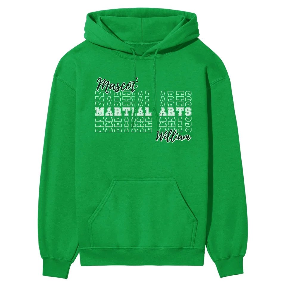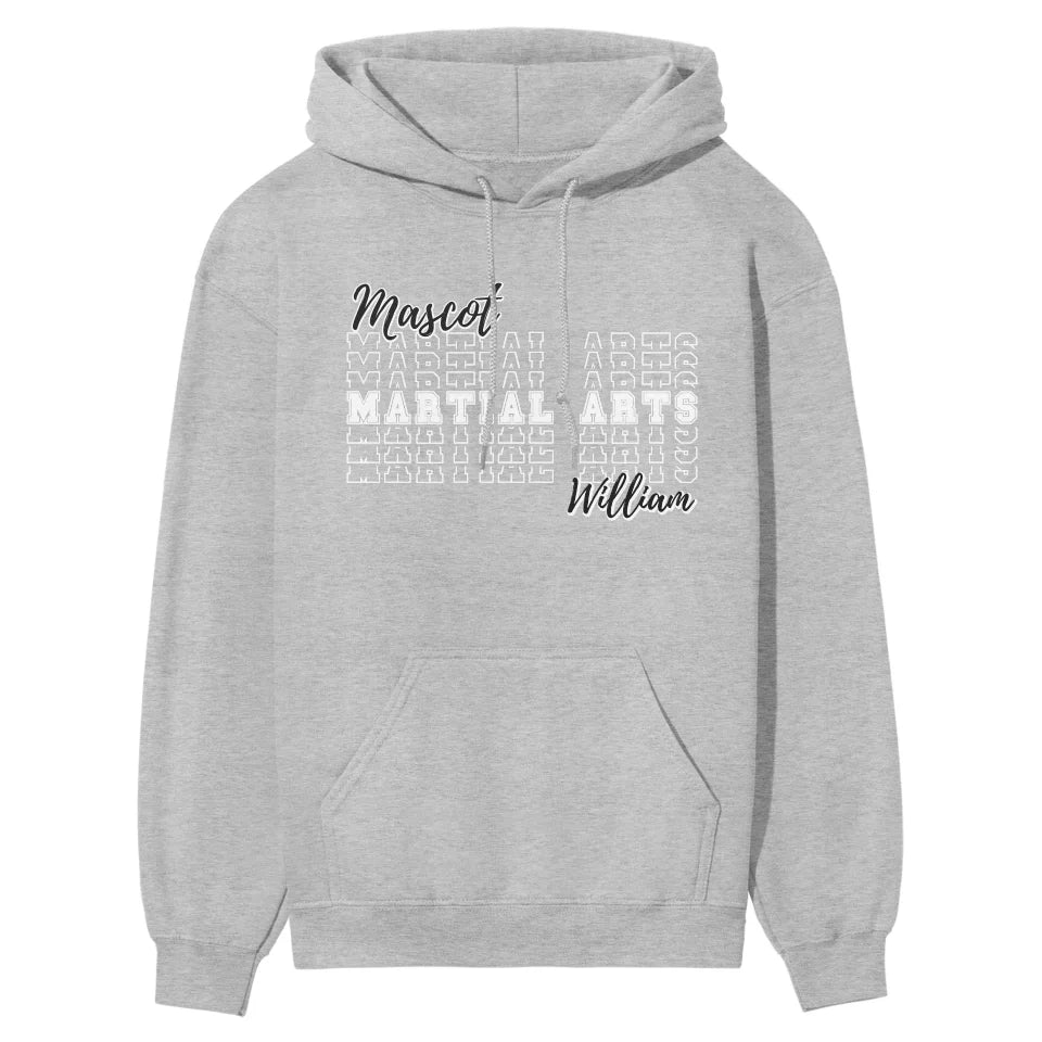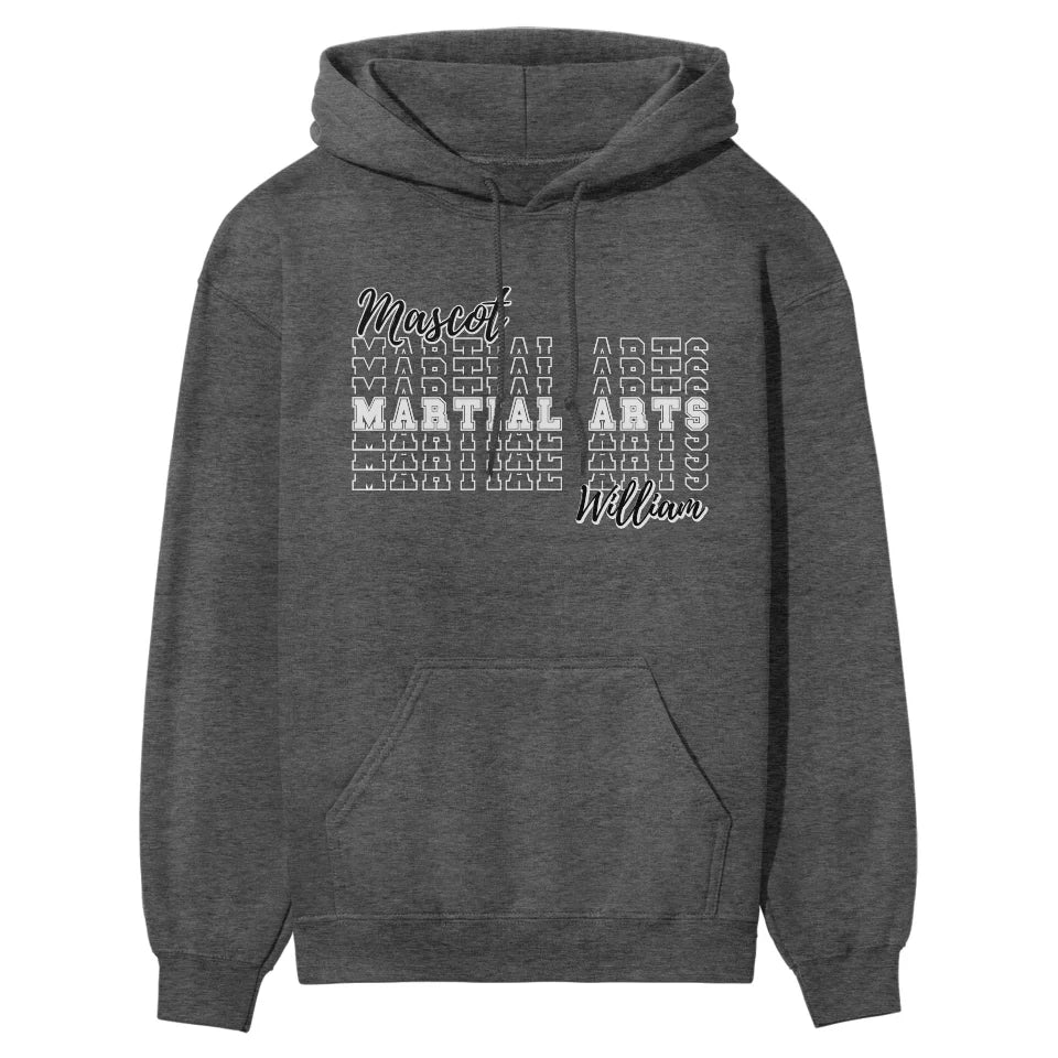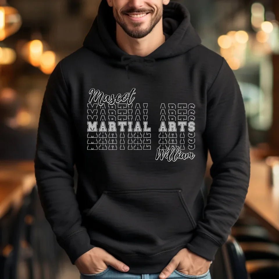 Martial Arts Hoodie - Showcase your pride with this customizable Martial Arts Hoodie, perfect for supporting your young martial artist. Personalize it with your child's name and team mascot to create a one-of-a-kind spirit wear piece. This hoodie makes an exceptional gift for any proud parent, especially for holidays, birthdays, or special occasions like Father's Day or Mother's Day. Celebrate your child's achievements in martial arts while staying cozy and stylish. Ideal for cheering from the sidelines or running errands, this hoodie lets everyone know you're a dedicated fan of your talented athlete. Embrace the excitement and show off your familyโs team spirit with this unique sweatshirt.