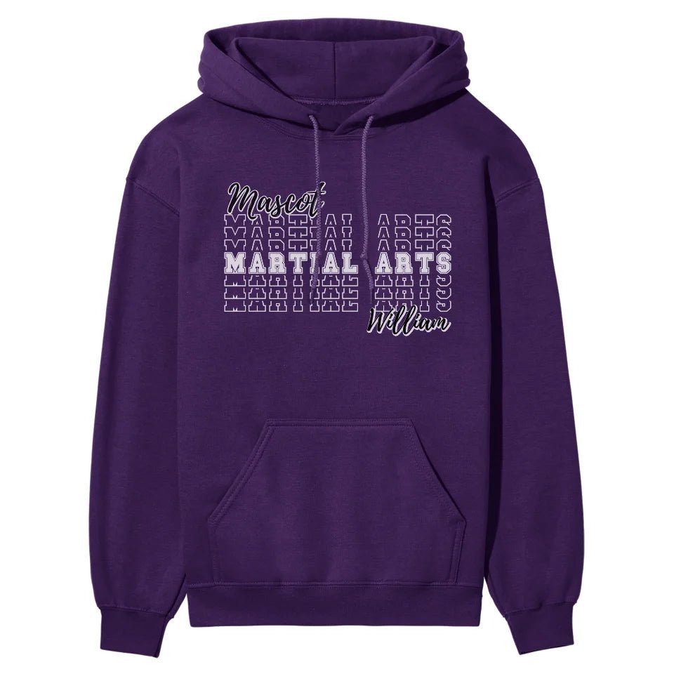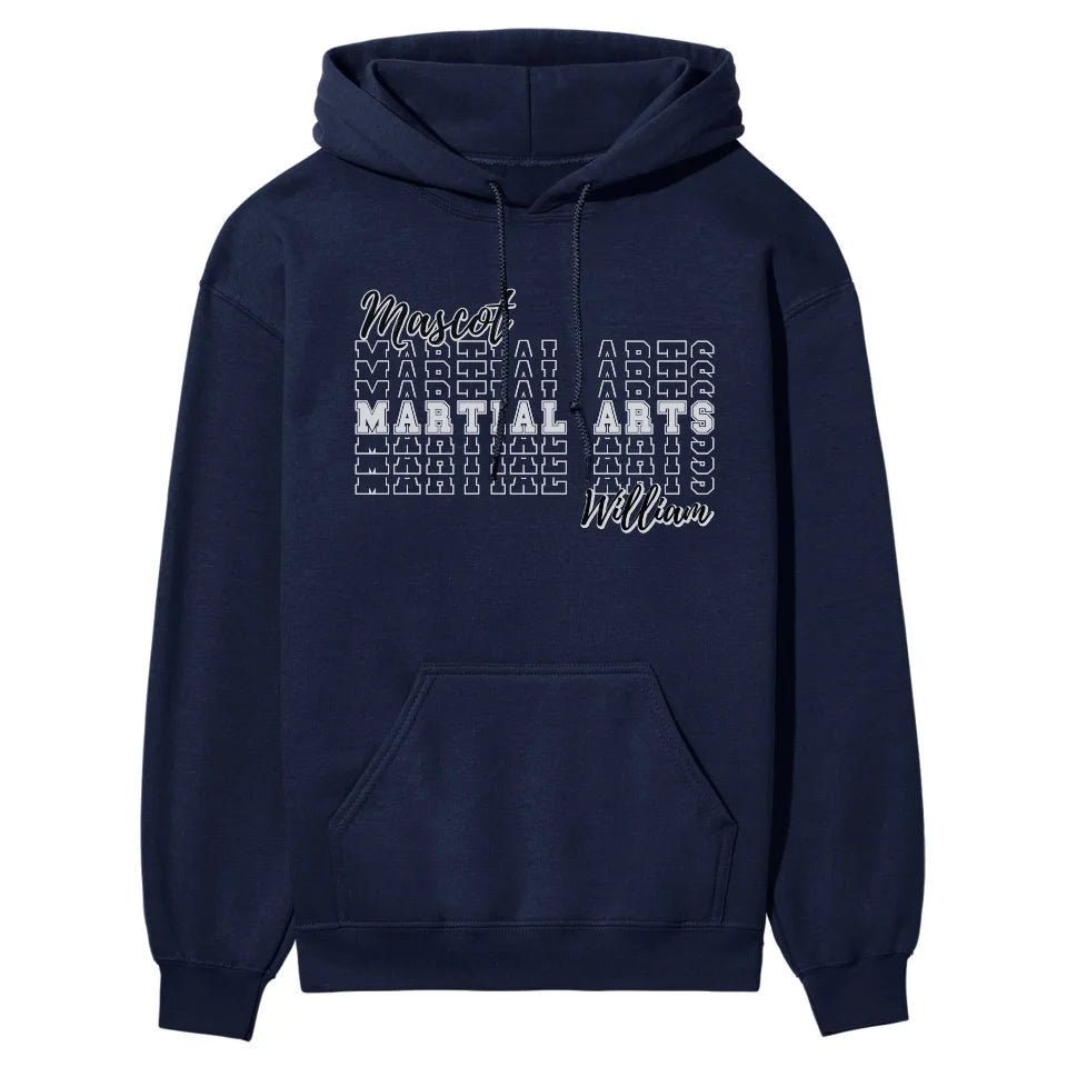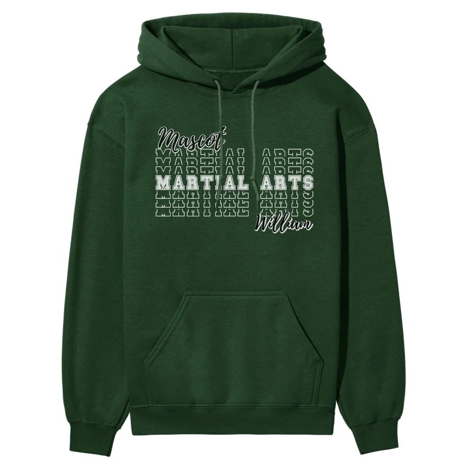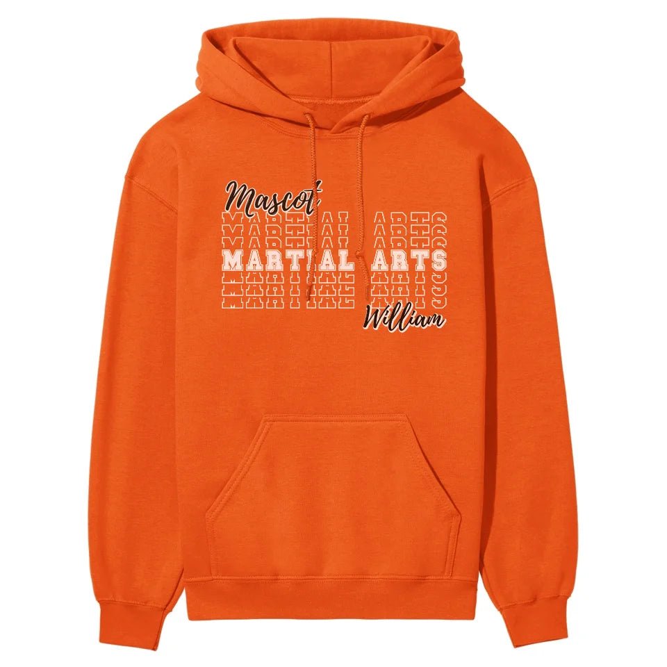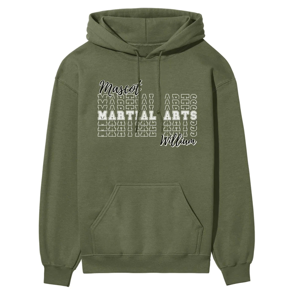 Martial Arts Hoodie - Showcase your pride with this customizable Martial Arts Hoodie, perfect for supporting your young martial artist. Personalize it with your child's name and team mascot to create a one-of-a-kind spirit wear piece. This hoodie makes an exceptional gift for any proud parent, especially for holidays, birthdays, or special occasions like Father's Day or Mother's Day. Celebrate your child's achievements in martial arts while staying cozy and stylish. Ideal for cheering from the sidelines or running errands, this hoodie lets everyone know you're a dedicated fan of your talented athlete. Embrace the excitement and show off your familyโs team spirit with this unique sweatshirt.