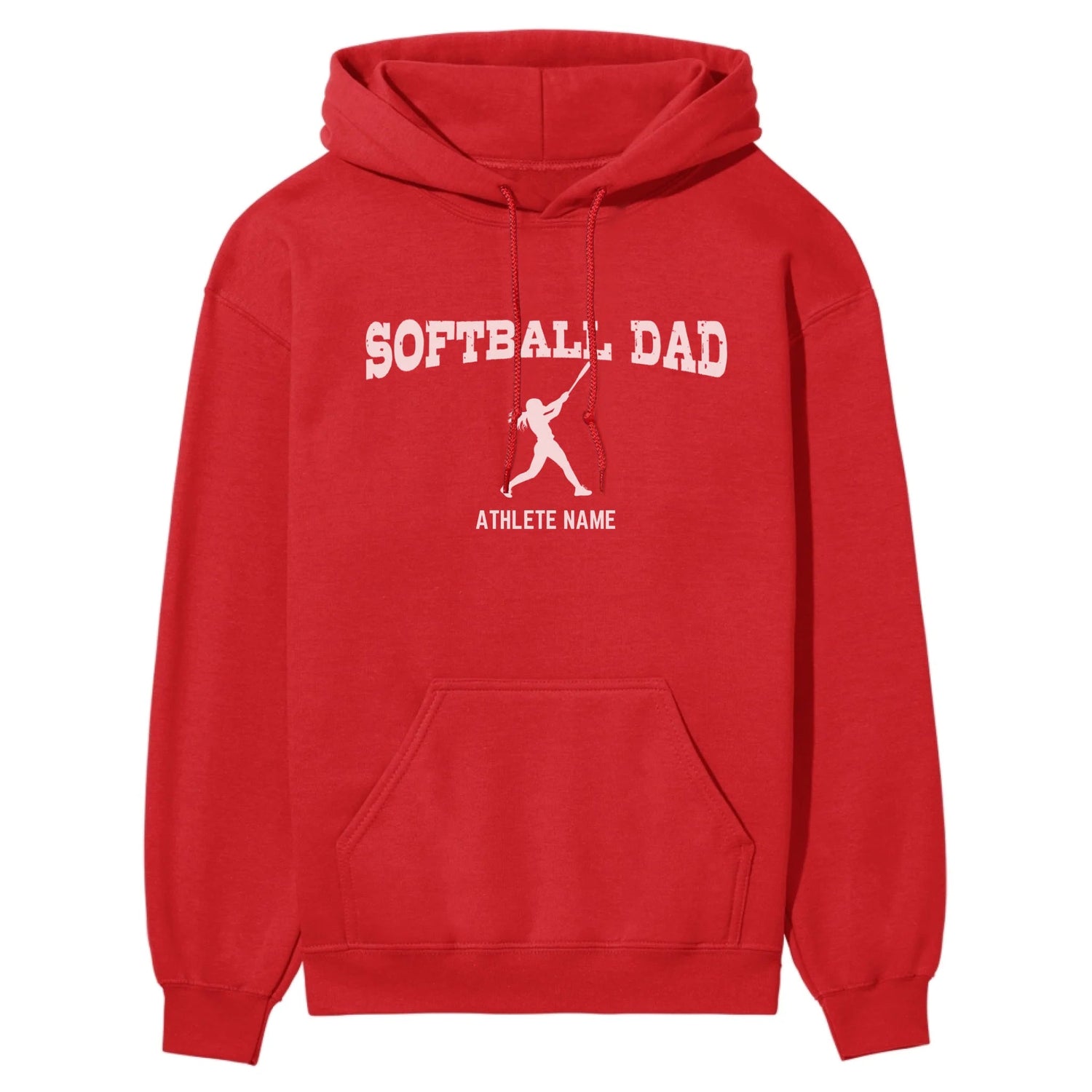 **Softball Dad Hoodie** - Celebrate your pride as a Softball Dad with this striking, customizable hoodie featuring a softball player icon and the player’s name. Perfect for showing off your team spirit, this white graphic hoodie is ideal for proud parents cheering from the sidelines. It's a fantastic gift for Father's Day, birthdays, the holiday season, or any special occasion that celebrates the dedicated dad who supports his youth athlete. This spirit wear piece not only keeps you warm during those chilly game days but also allows you to stand out as the ultimate softball supporter. Make every game day memorable by personalizing the hoodie with your player's name for a unique touch that highlights your unwavering support for their passion and talent. Wear your pride on your sleeve and become the envy of the bleachers with this Softball Dad Hoodie!