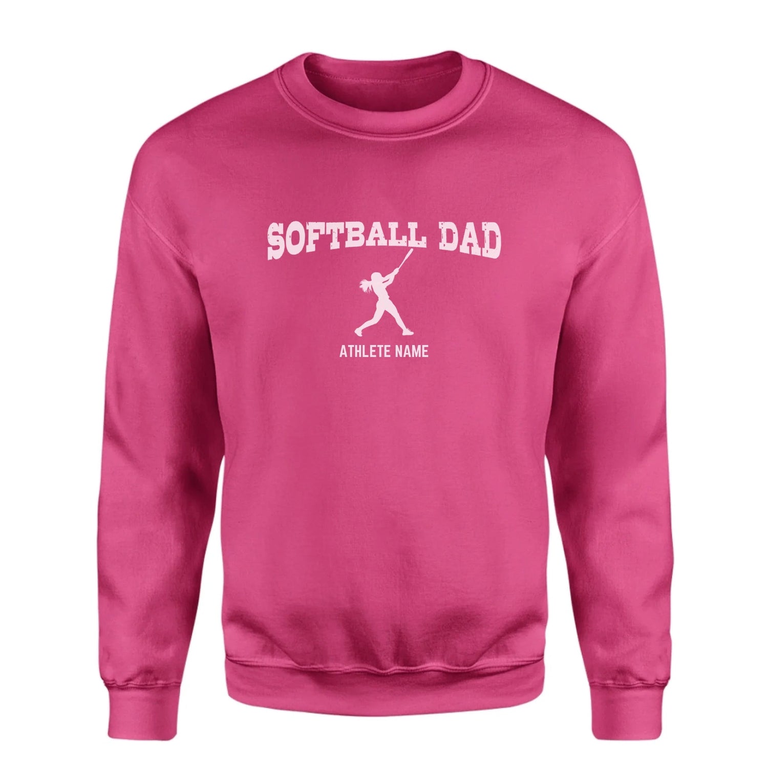 Softball Dad with Softball Player Icon and Softball Player Name | Sweatshirt | White Graphic