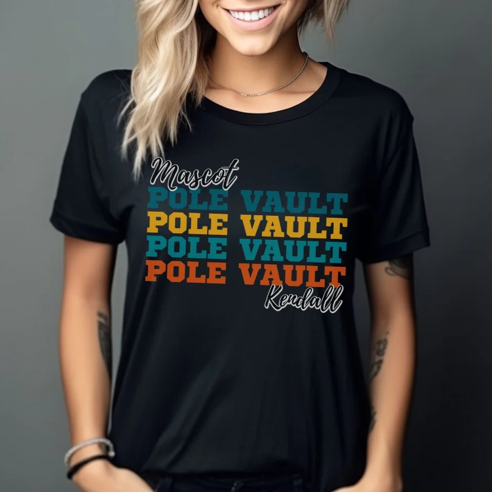 Pole Vault Shirt - Elevate your team spirit with this Personalized Pole Vault Unisex T-Shirt, featuring a unique design with your mascot and the pole vaulter's name. Perfect for proud parents and fans cheering from the sidelines, this customizable shirt captures the heart of pole vaulting. Ideal for gifting on special occasions like birthdays, holidays, or just to celebrate the love and dedication of youth athletes, this shirt is a meaningful piece of spirit wear. Whether you're at a meet or supporting your young vaulter from afar, wear your enthusiasm with pride and create lasting memories. Show your support and let everyone know who you're cheering for with this thoughtful personalized gift.