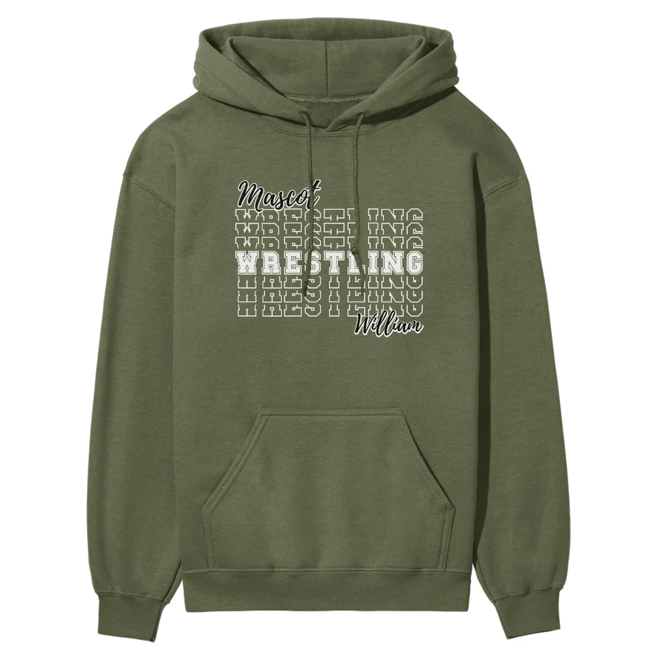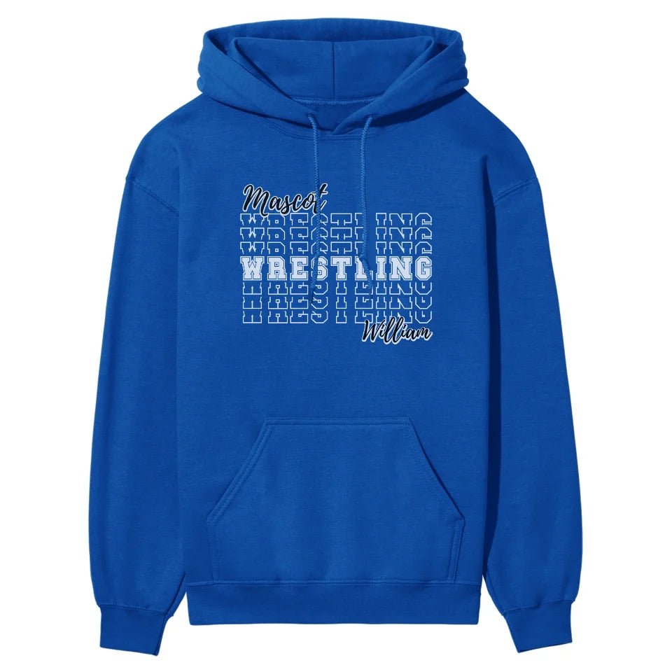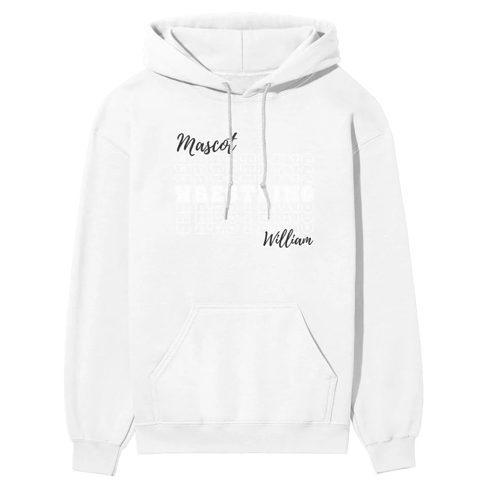Wrestling Hoodie - Show off your team spirit with our Custom Wrestling Sweatshirt! Featuring your choice of mascot and personalized with the wrestler's name, this hoodie is a must-have for any proud wrestling parent or fan. Perfect for wearing to matches or around town, it’s more than just apparel—it’s a badge of pride. This makes a thoughtful gift for Father's Day, Valentine's Day, or any special occasion where you want to celebrate your love and support for your wrestling star. Ideal for birthdays or holidays, this spirited hoodie showcases your dedication to both the sport and your favorite athlete. Embrace the wrestling season with style and pride, and make every match a memorable one with this unique, customized piece of spirit wear.