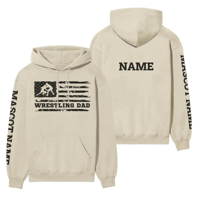 Wrestling Dad Hoodie - Celebrate your wrestling star with our customizable Wrestling Dad Horizontal Flag Hoodie! This stylish black hoodie features a bold graphic and allows you to personalize it with your wrestler's name, making it the perfect piece of spirit wear for proud parents and fans of youth athletes. Ideal for Father's Day, birthdays, holidays, or just to show your pride at wrestling meets and tournaments, this hoodie is a heartfelt gift that showcases your unwavering support. Engaging and proudly supportive, it's a must-have for any wrestling dad looking to represent their young athlete with pride.