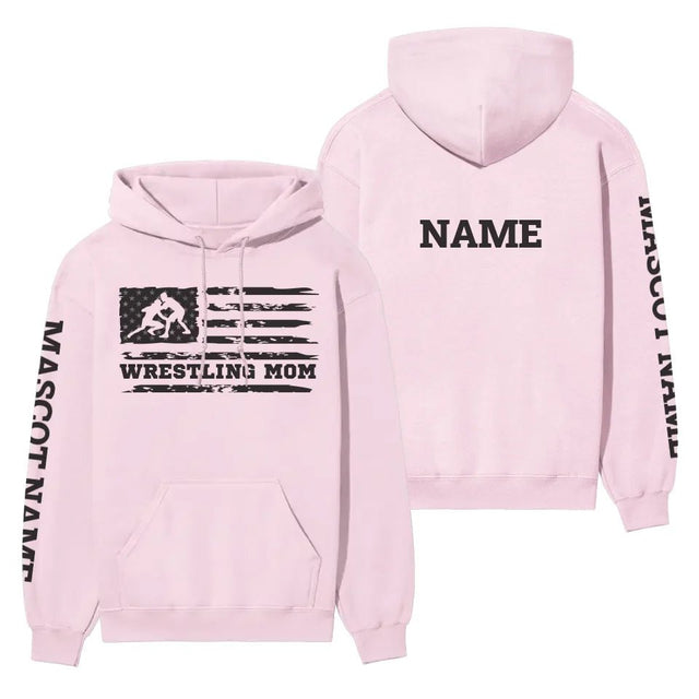Wrestling Mom Hoodie - Show your wrestling pride with our customizable Wrestling Mom Horizontal Flag Hoodie in black! Perfect for proud parents and fans of youth wrestlers, this spirit wear allows you to personalize the graphic with your athlete's name. Whether you're cheering from the stands or supporting them at practice, this hoodie is an ideal way to showcase your unwavering support.
