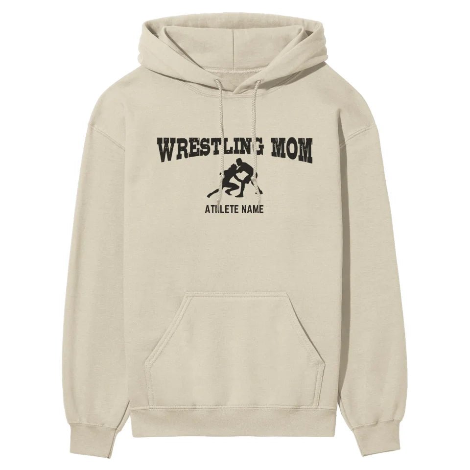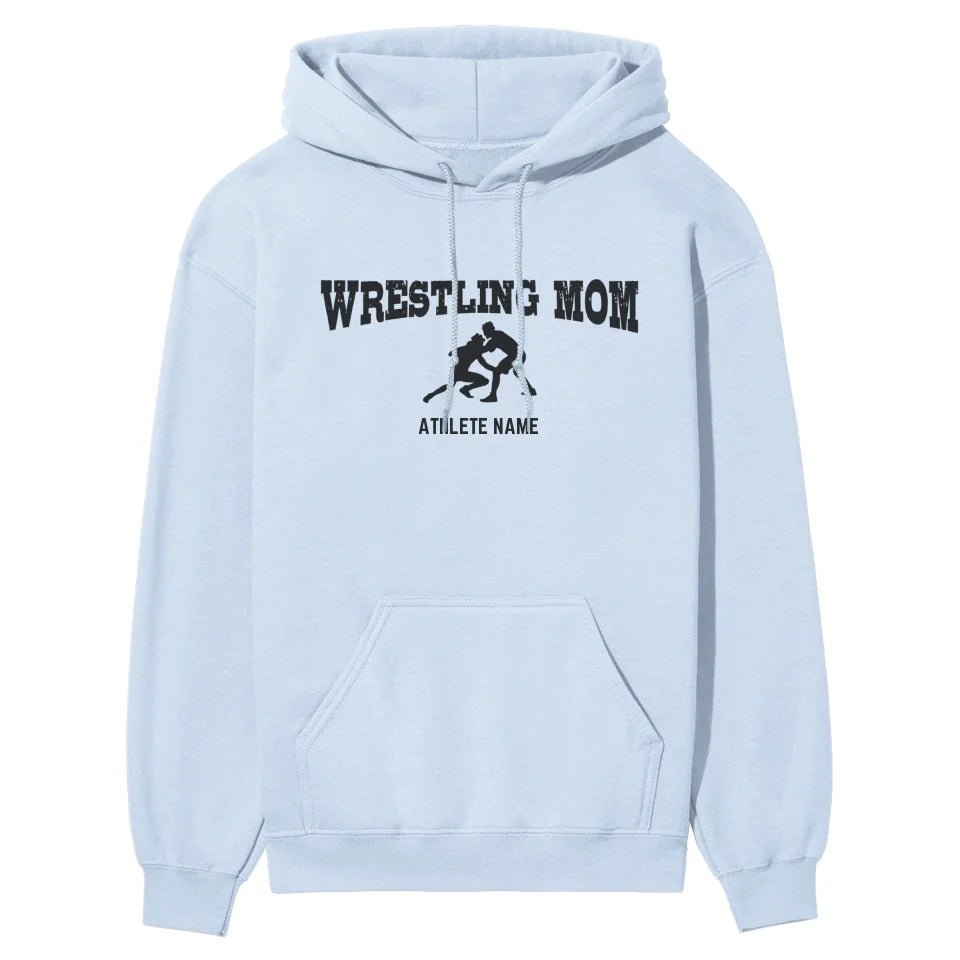Wrestling Mom with Wrestler Icon and Wrestler Name | Hoodie | Black Graphic