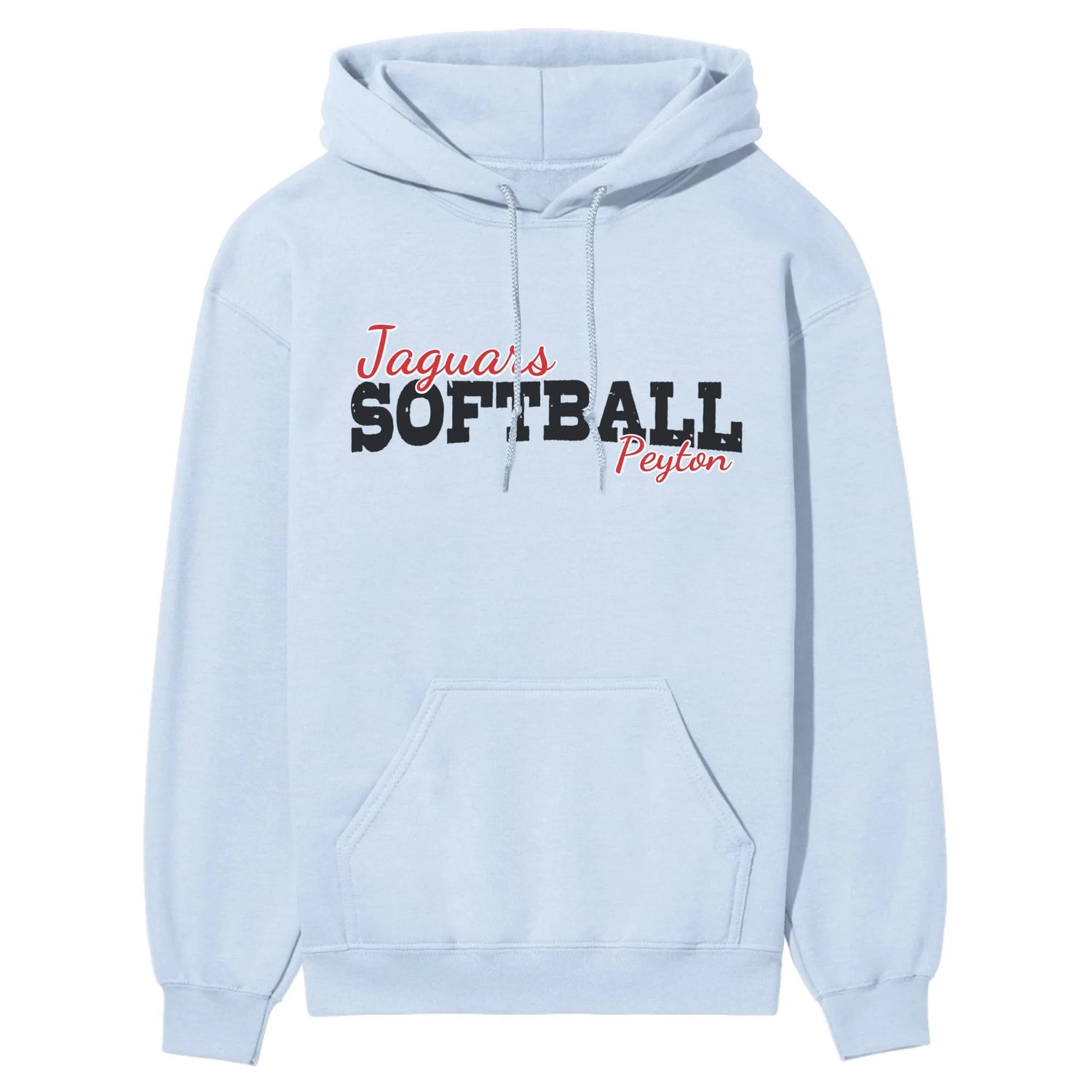 Softball Hoodie - Show your team spirit with this customizable Softball Hoodie, perfect for parents and fans cheering on their youth athletes. Personalize it with your favorite softball mascot and player's name to make it truly unique. This black graphic hoodie is ideal for game days, offering both style and support. It makes a thoughtful gift for Mother’s Day, Father’s Day, birthdays, or any special occasion to celebrate your love for the game and your support for your player. Stand out in the crowd and wear your pride on your sleeve with this one-of-a-kind spirit wear. Whether you're on the sidelines or in the stands, this hoodie is sure to be a hit with fellow fans and make every outing more memorable.
