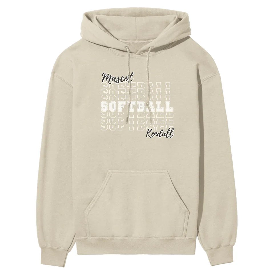 Softball Hoodie - Showcase your team spirit with our Custom Softball Sweatshirt featuring your mascot and player's name. Perfect for softball parents and fans who love to cheer from the sidelines, this personalized hoodie is a must-have piece of spirit wear. Tailor it with your athlete's name and team mascot to create a unique tribute to your favorite player. An ideal gift for Mother's Day, Father's Day, birthdays, or holidays, it's a thoughtful way to express your pride and celebrate the softball season. Whether you're supporting from the stands or staying cozy at home, this customizable sweatshirt ensures you carry the spirit of the game wherever you go. Wear it with pride and let everyone know your team loyalty at every game or event.