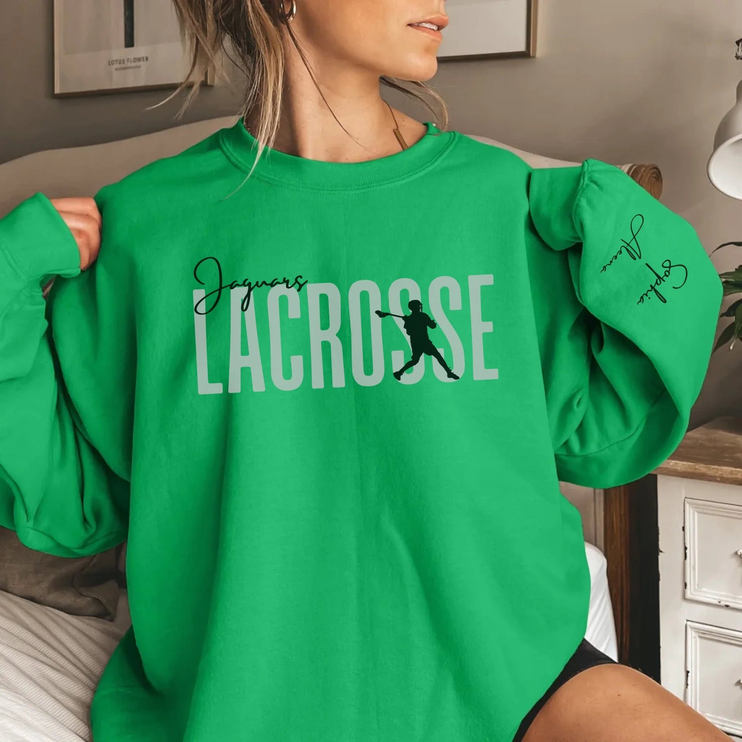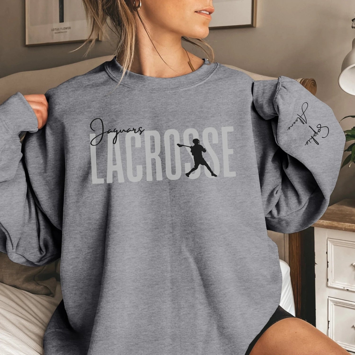 Personalized Lacrosse Sweatshirt With Modern Bold Design and Lacrosse Player Name on Sleeve | Sweatshirt